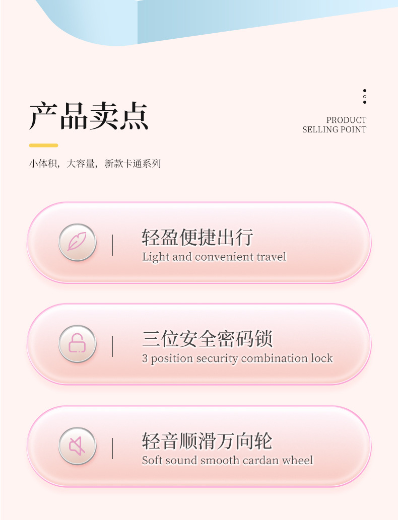 새로운 어린이 수하물 귀여운 재미있는 만화 트롤리 케이스 인쇄 가능한 로고 조합 잠금 탑승 상자 휴일 선물 상자