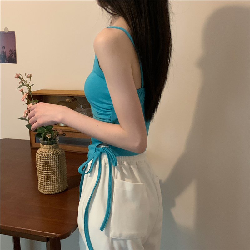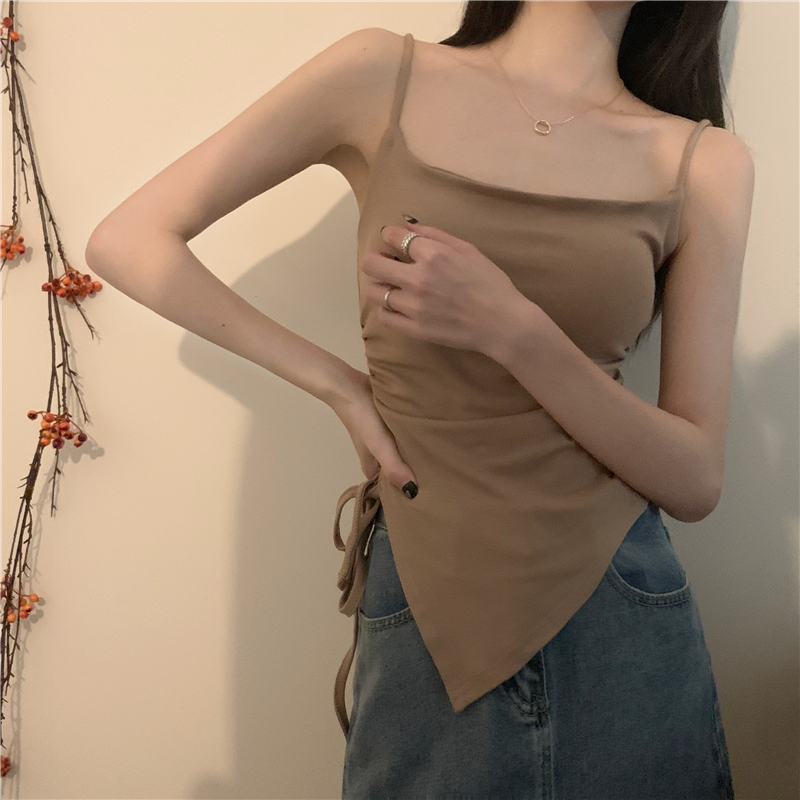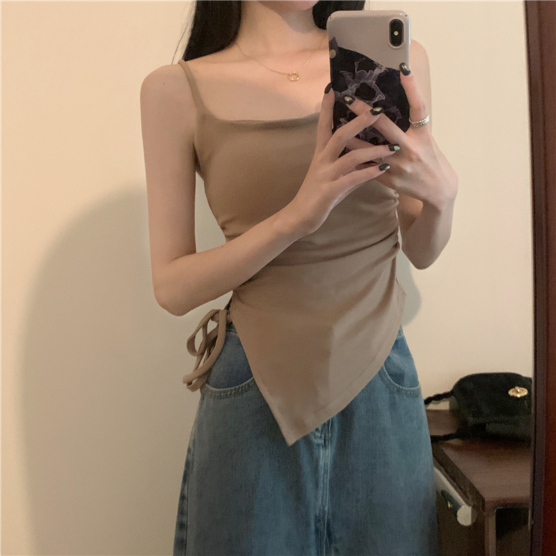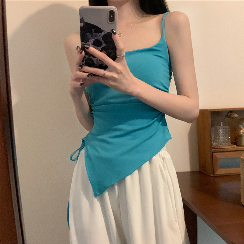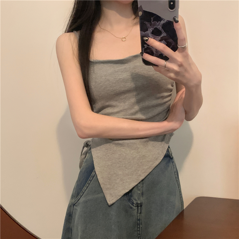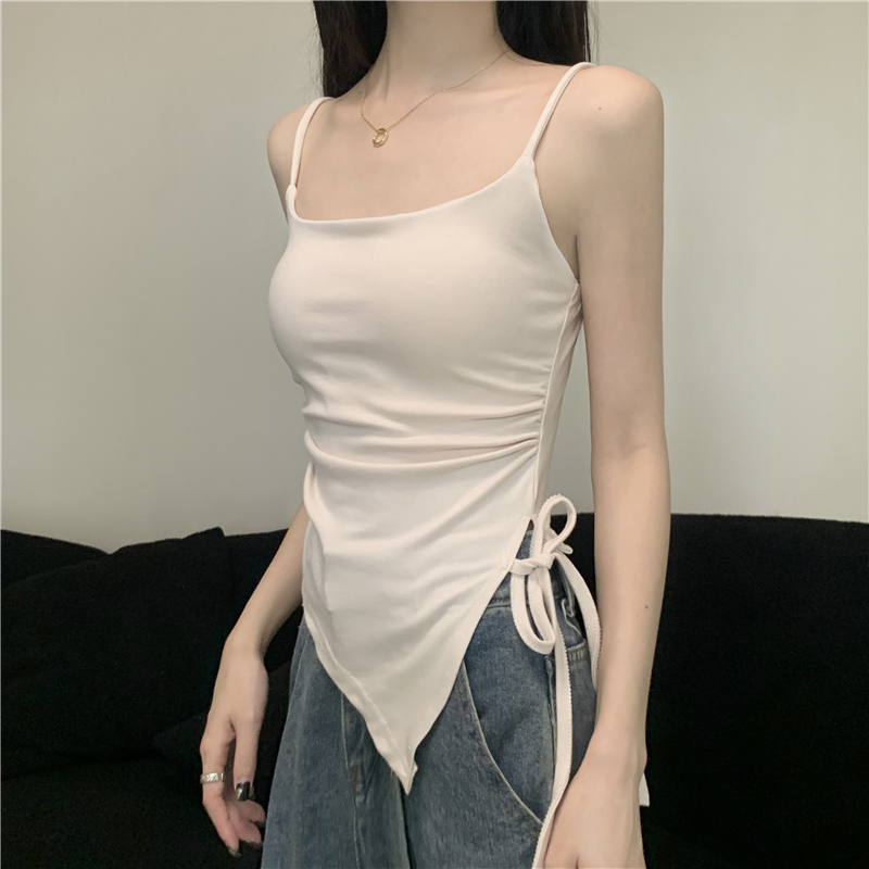불규칙한 분할 Camisole 여성의 여름 레이스 업 디자인 센스 내부 밴드 가슴 패드 외부 달콤한 매운 튜브 탑