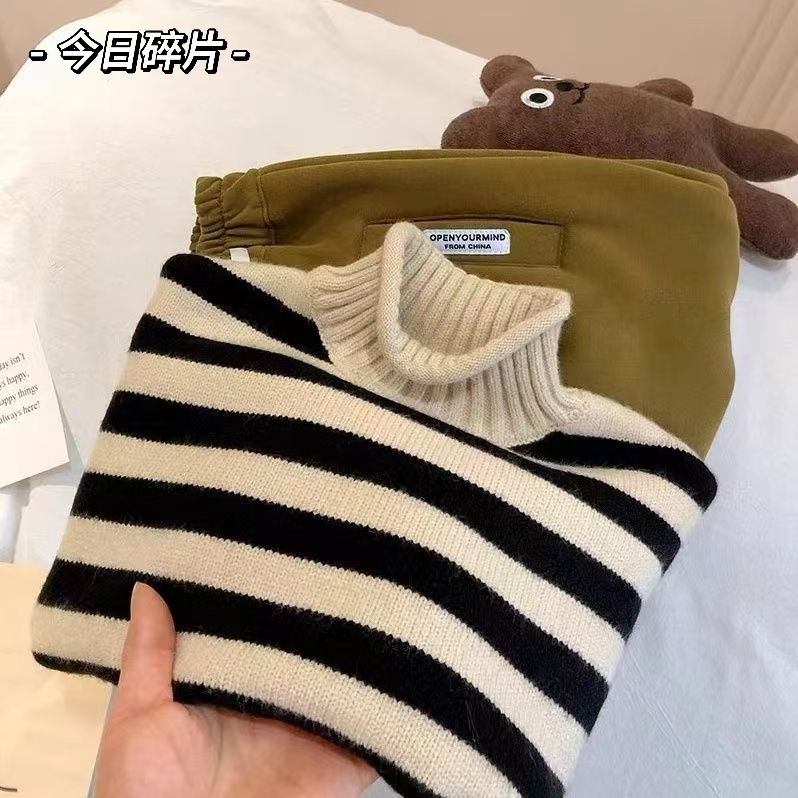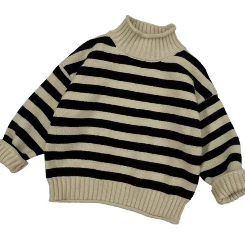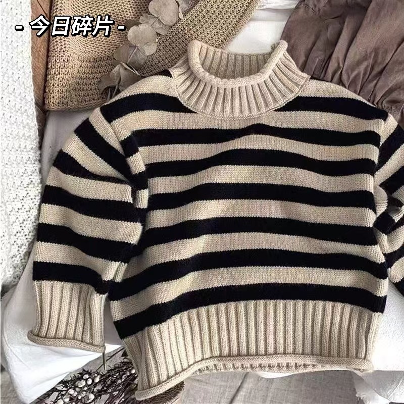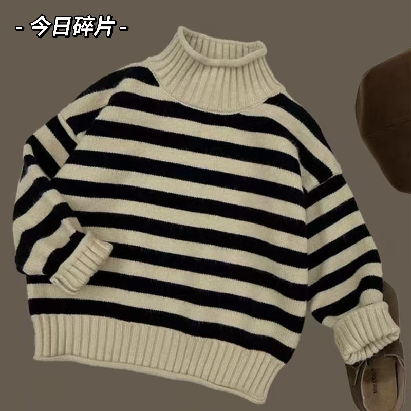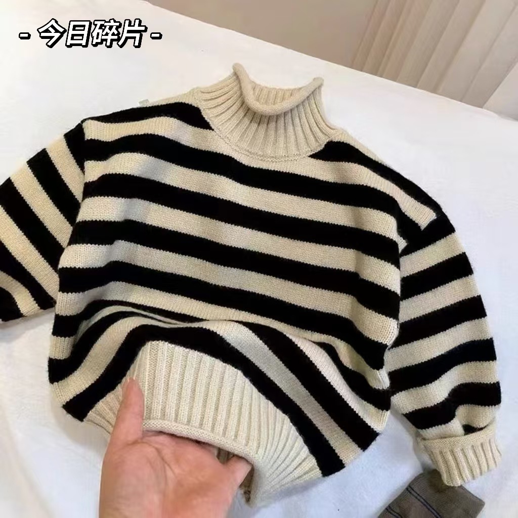 가을과 겨울 세련된 패션 올매치 어린이 중간 터틀넥 스웨터 소년의 줄무늬 니트 베이스 셔츠 캐주얼 탑스토어 가기