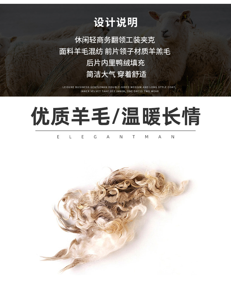 가벼운 럭셔리 남성 양면 양모 다운 재킷 겨울 새로운 도착 비즈니스 청소년 툴링 울 다운 재킷