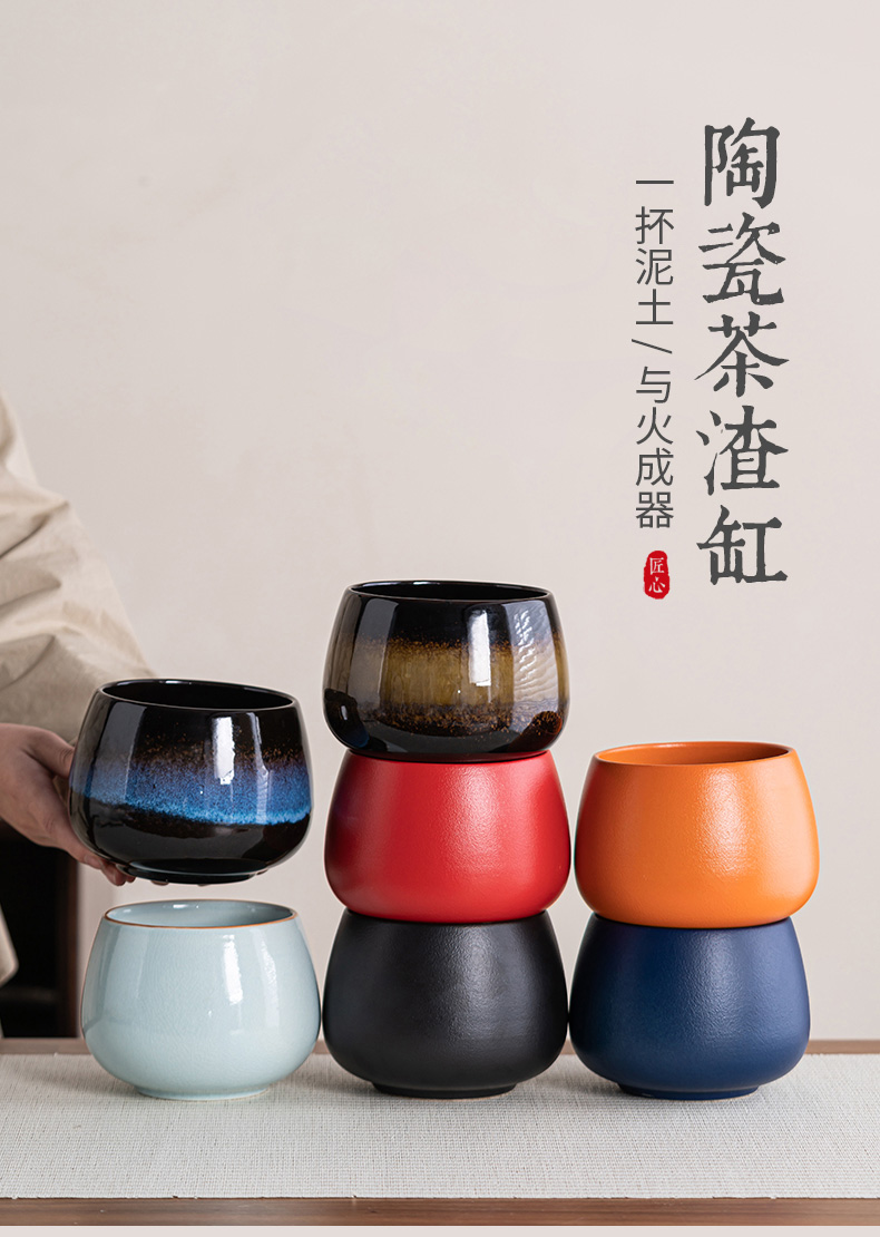 차 세척 차 잔류 물 탱크 세라믹 건물 물 작은 큰 물 냄비 폐수 버킷 재떨이 차 세트 액세서리 차 물 연마 비문스토어 가기