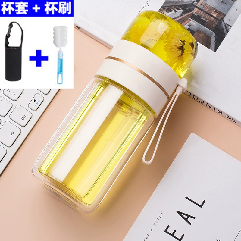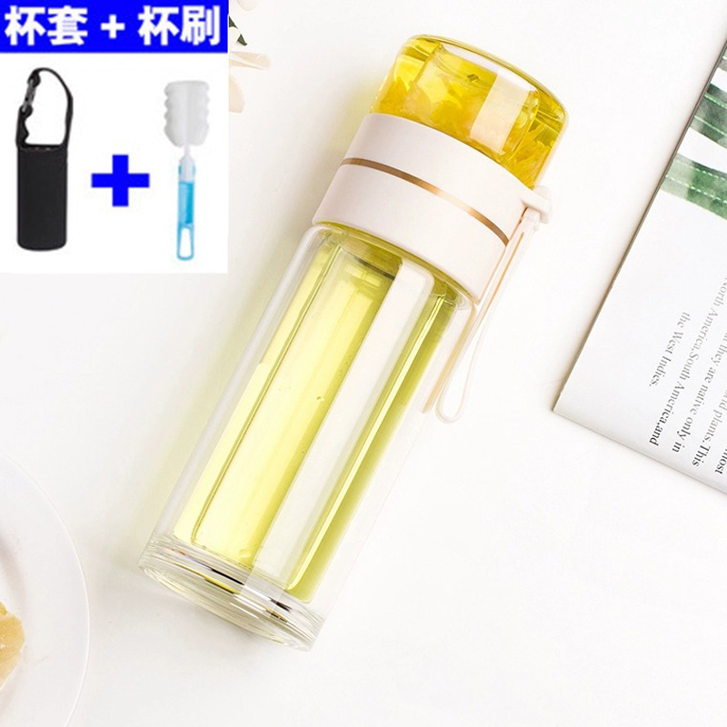 유리 컵 차 물 분리 더블 레이어 남자 물 컵 여자 휴대용 사무실 티 컵 개인 차 Heng Ming