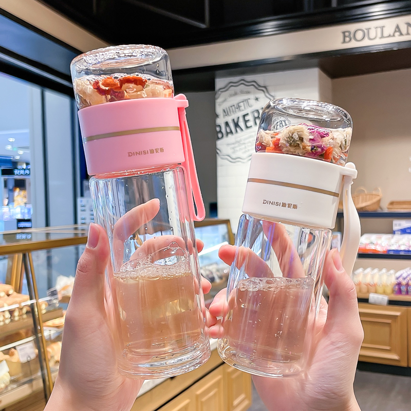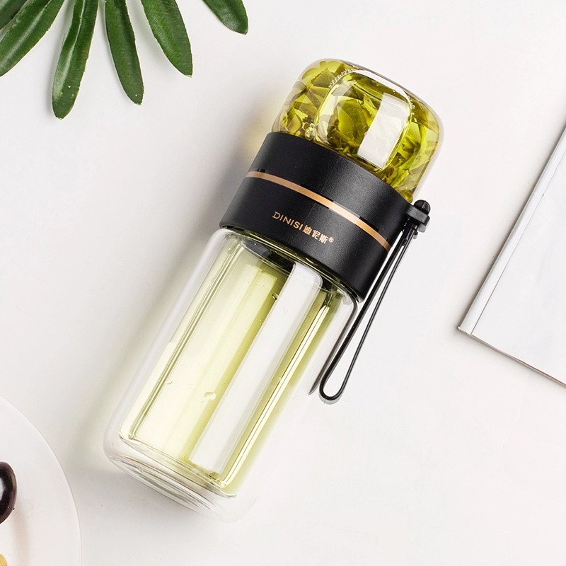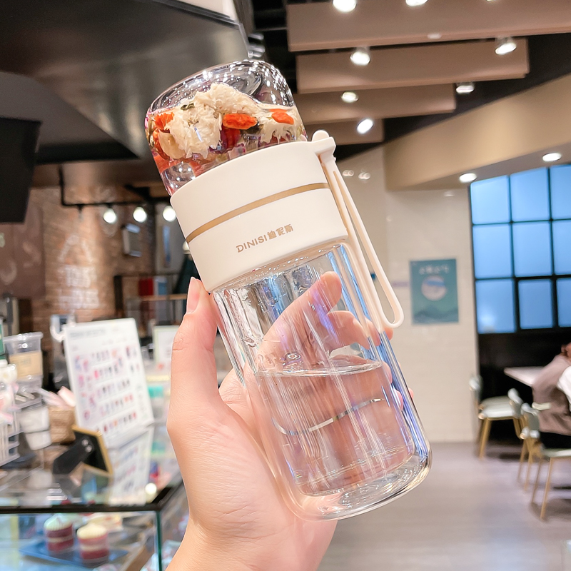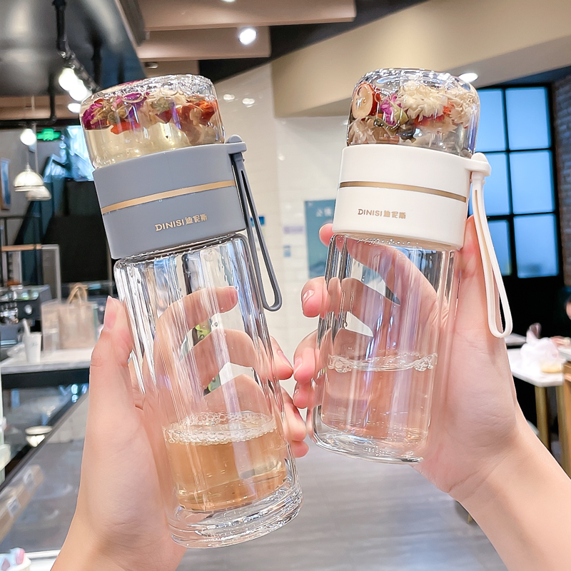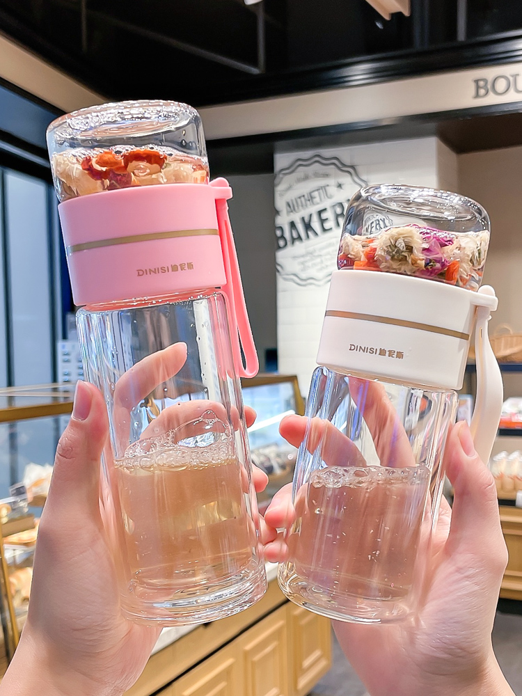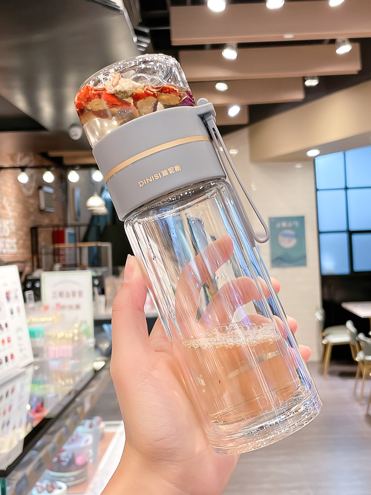 유리 컵 차 물 분리 더블 레이어 남자 물 컵 여자 휴대용 사무실 티 컵 개인 차 Heng Ming스토어 가기