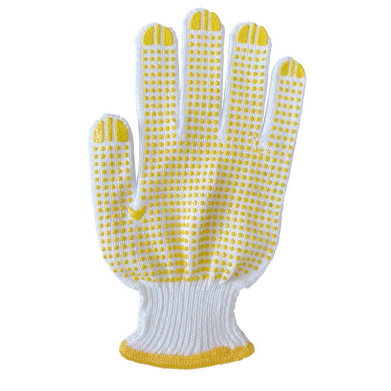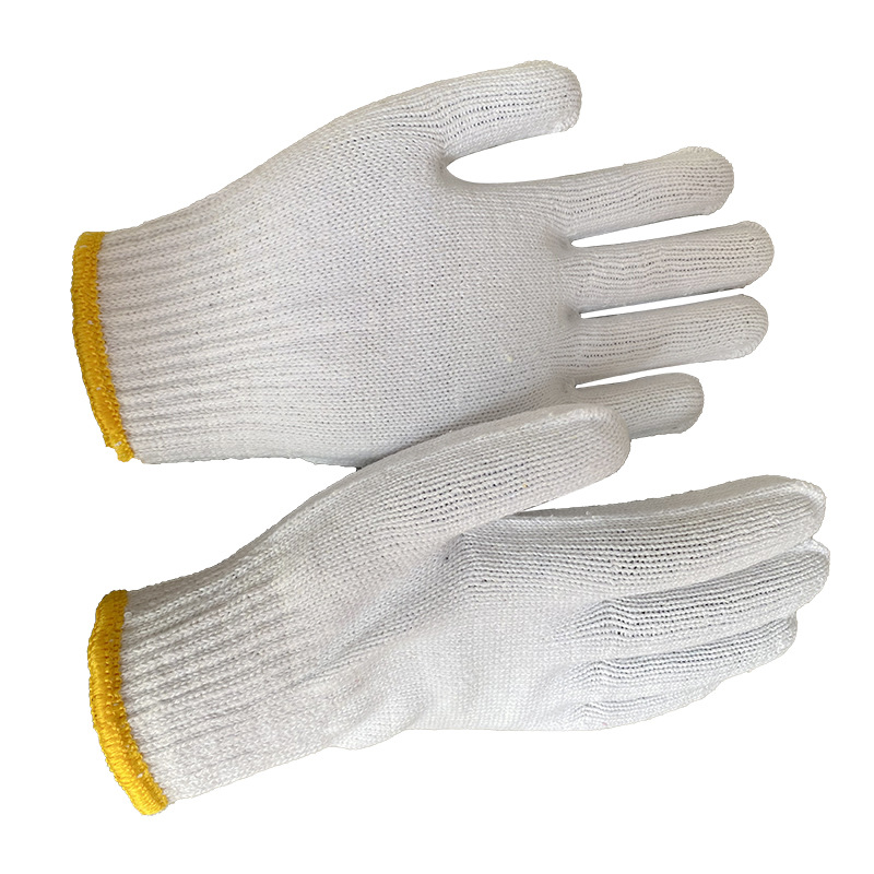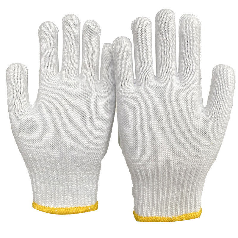 • 노란색 가장자리 흰색 면 장갑 600g 12쌍/쌍