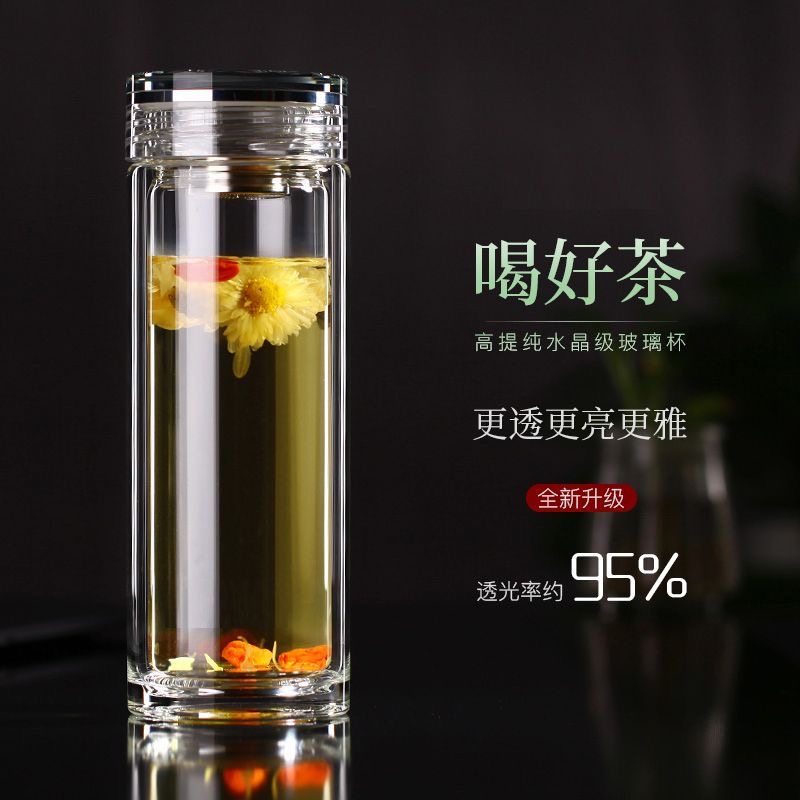 여름 더블 레이어 두꺼운 크리스탈 컵 유리 건강 오피스 워터 컵 자동차 차 상업 간단한 남성 Heng Ming