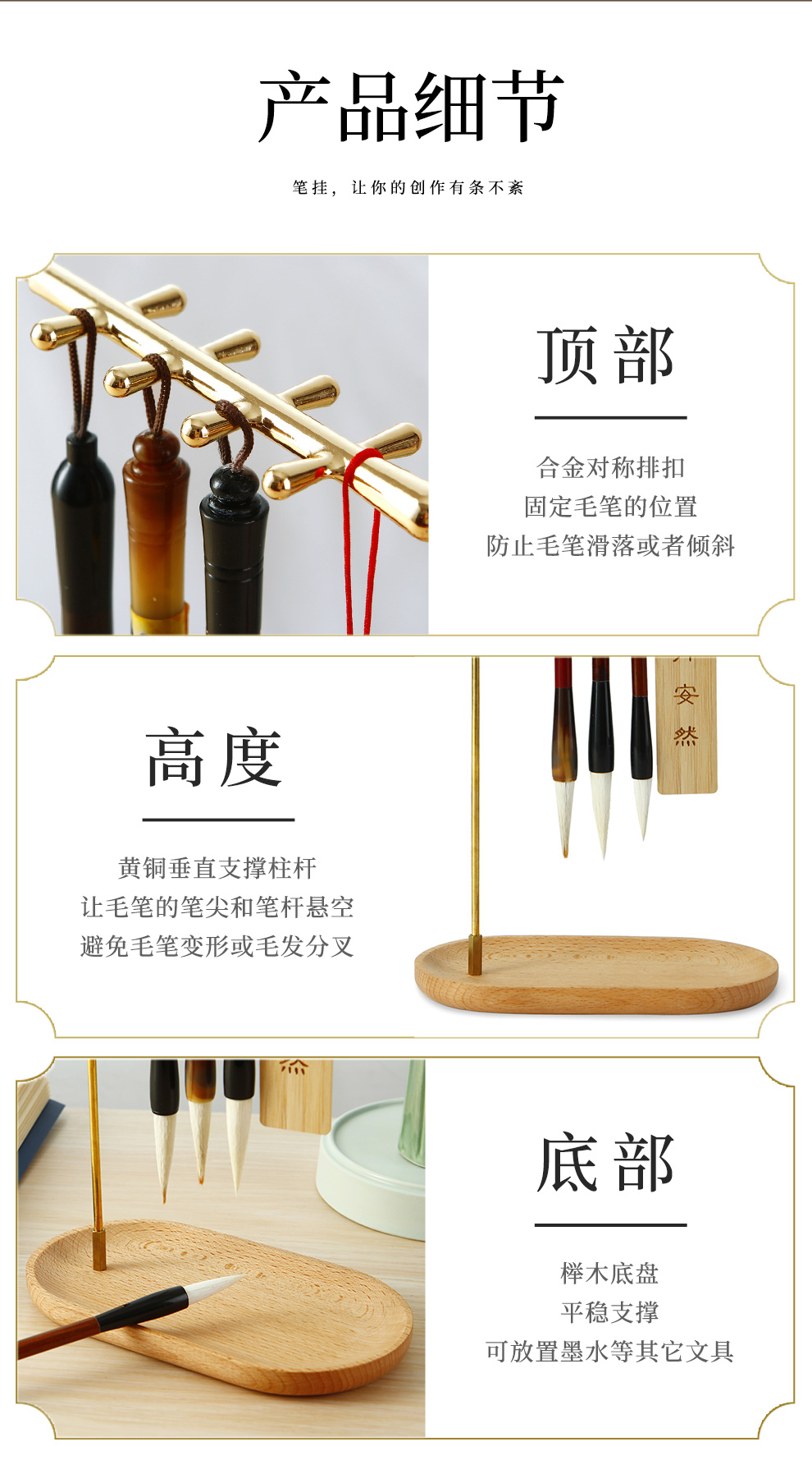 Beech Pen 교수형 7 자형 Breasted Brush Bracket Guofeng 브러시 문구 보관 데스크탑 장식품 학생 Mao Heng Ming