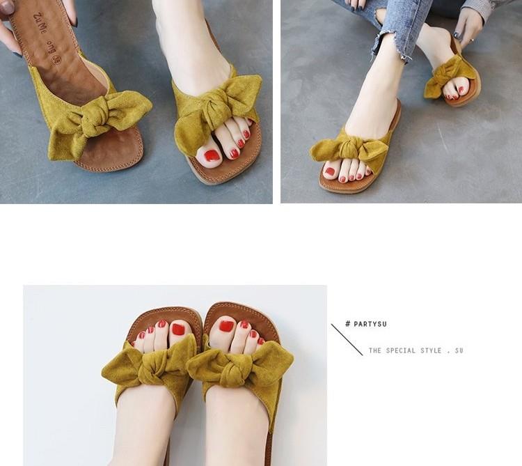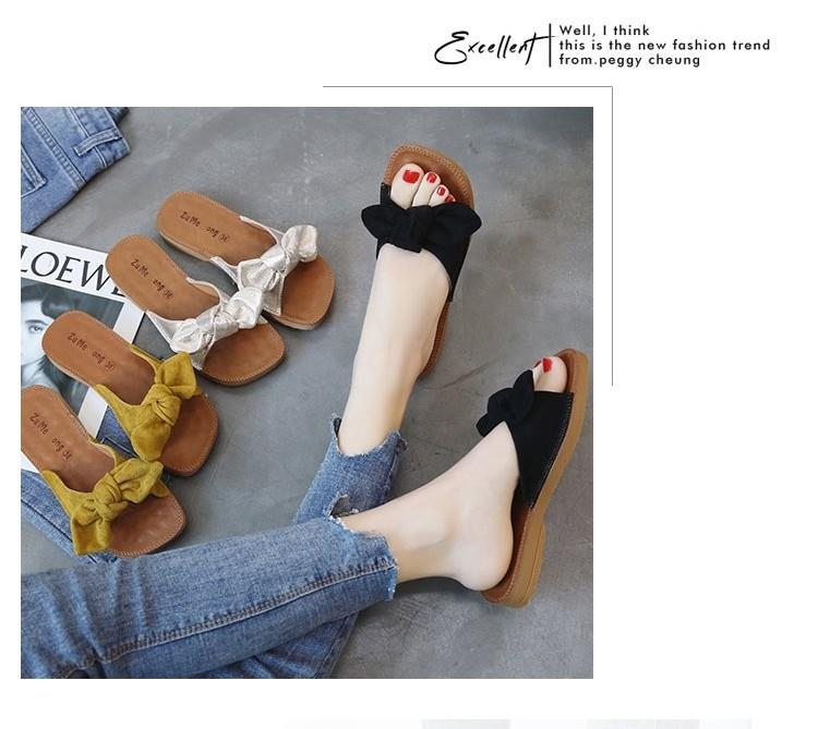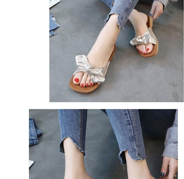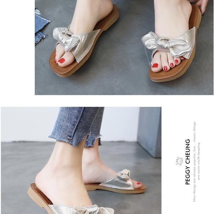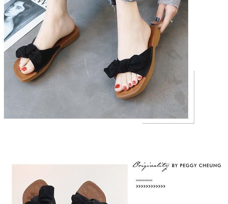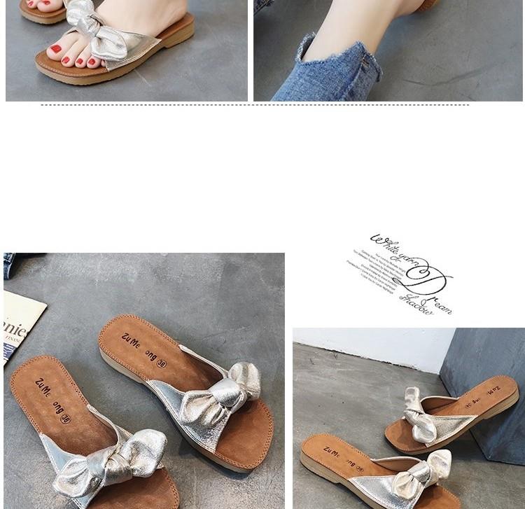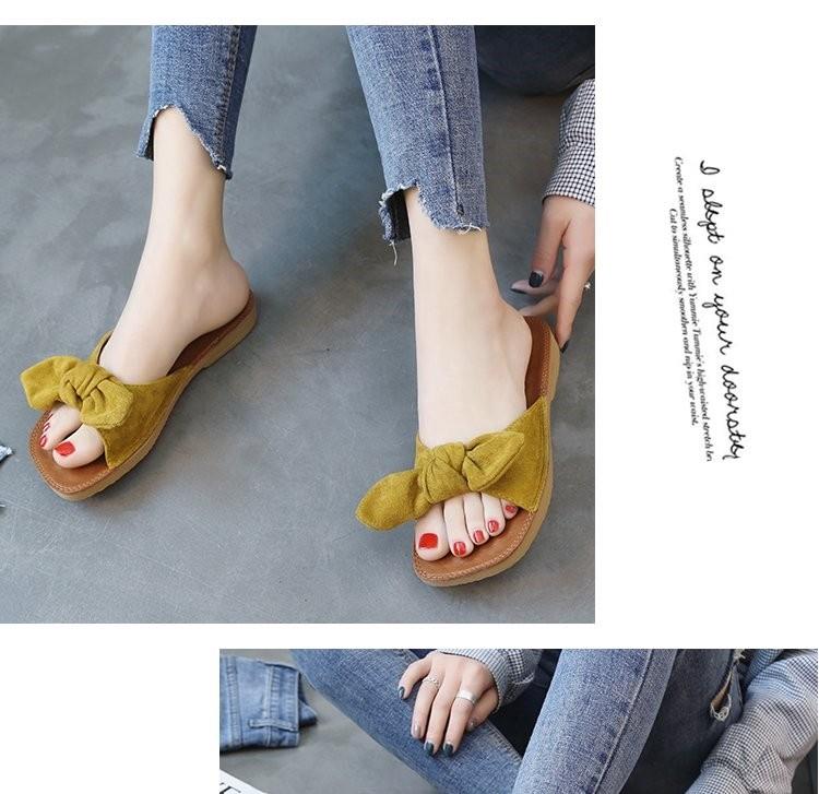 소프트 바텀 슬리퍼 여성 비치 플랫 하단 한국식 쇠고기 텐더 여름 패션 보우 아우터웨어 올매치 씨사이드 매달린 비문
