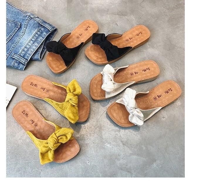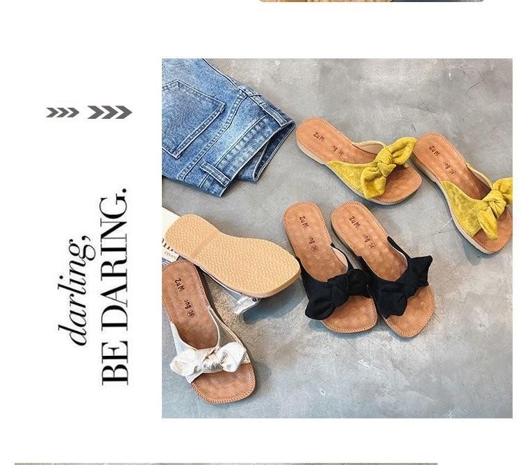 소프트 바텀 슬리퍼 여성 비치 플랫 하단 한국식 쇠고기 텐더 여름 패션 보우 아우터웨어 올매치 씨사이드 매달린 비문스토어 가기