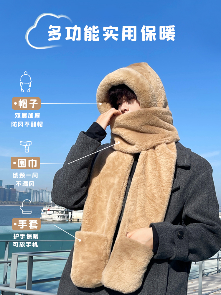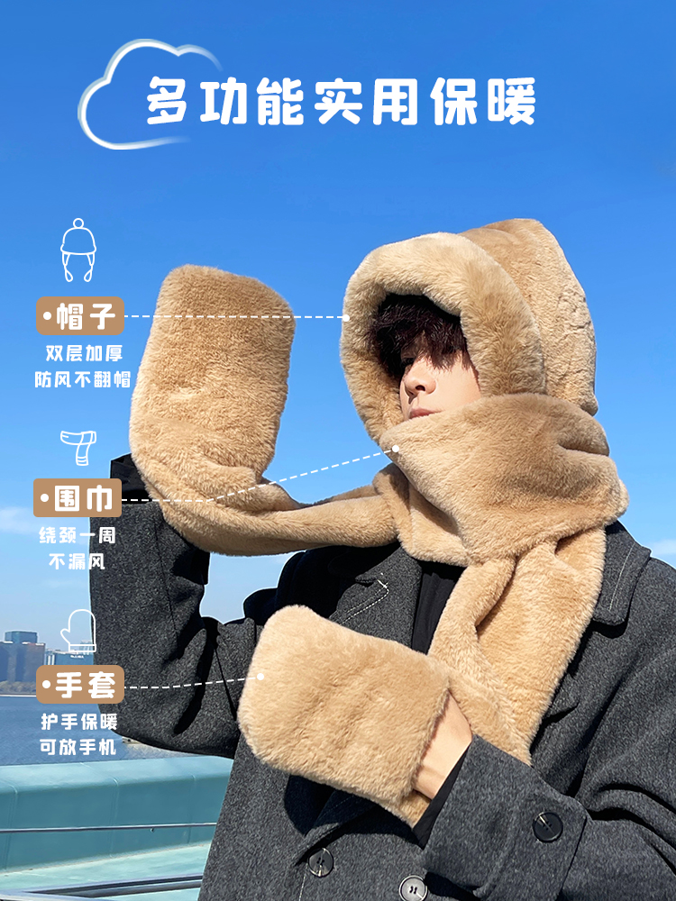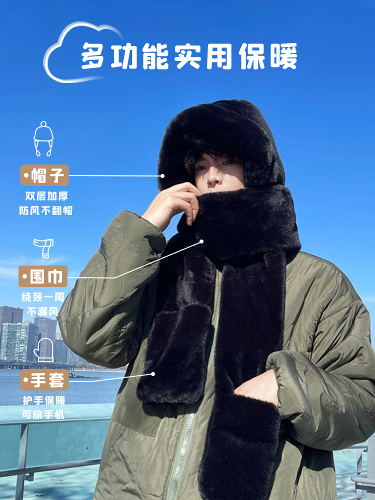 모자 남자의 겨울 모자 스카프 원피스 3 피스 세트 Heng Ming과 함께 남자의 겨울 따뜻한 봉제 방풍 스카프스토어 가기