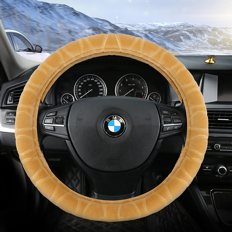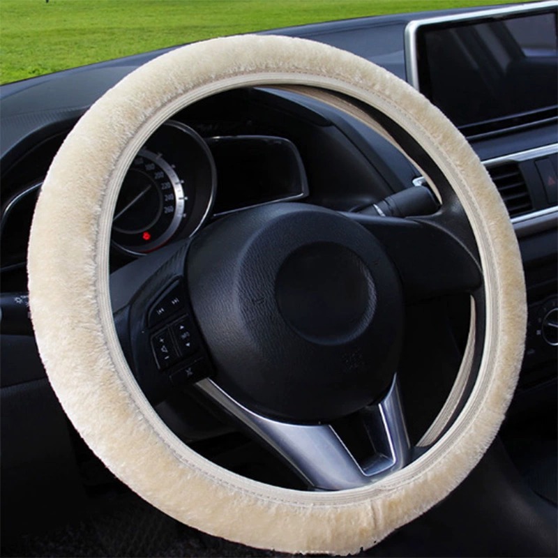 • 우아한 플러시 스티어링 휠 커버 [베이지]✓