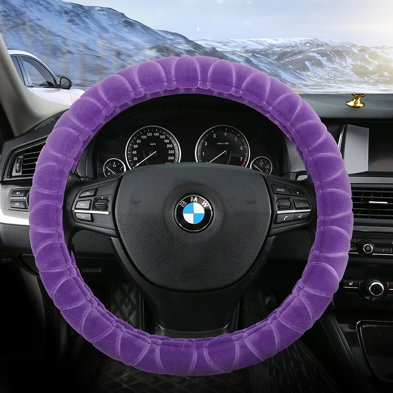 • 우아한 플러시 스티어링 휠 커버 [보라색] ✓