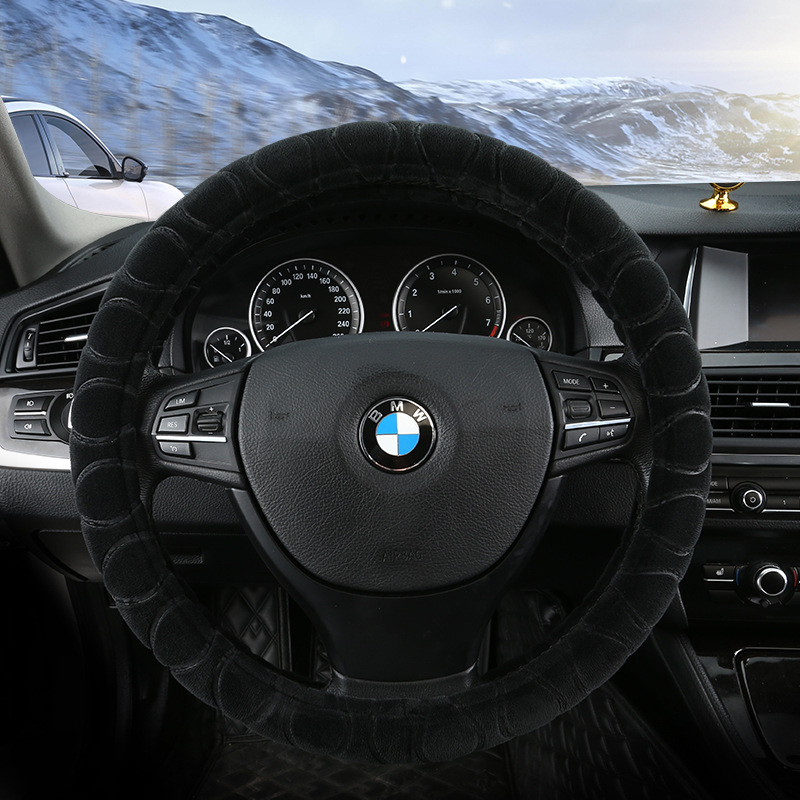 • 우아한 플러시 스티어링 휠 커버 [블랙]✓