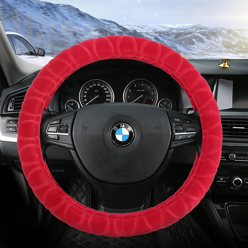 • 우아한 플러시 스티어링 휠 커버 [레드]✓