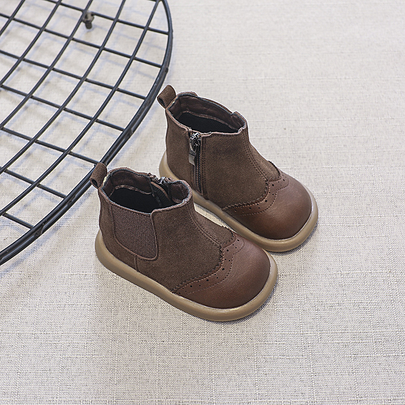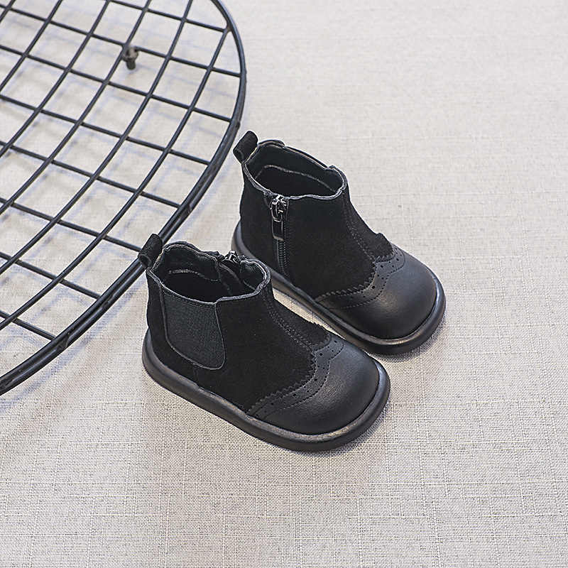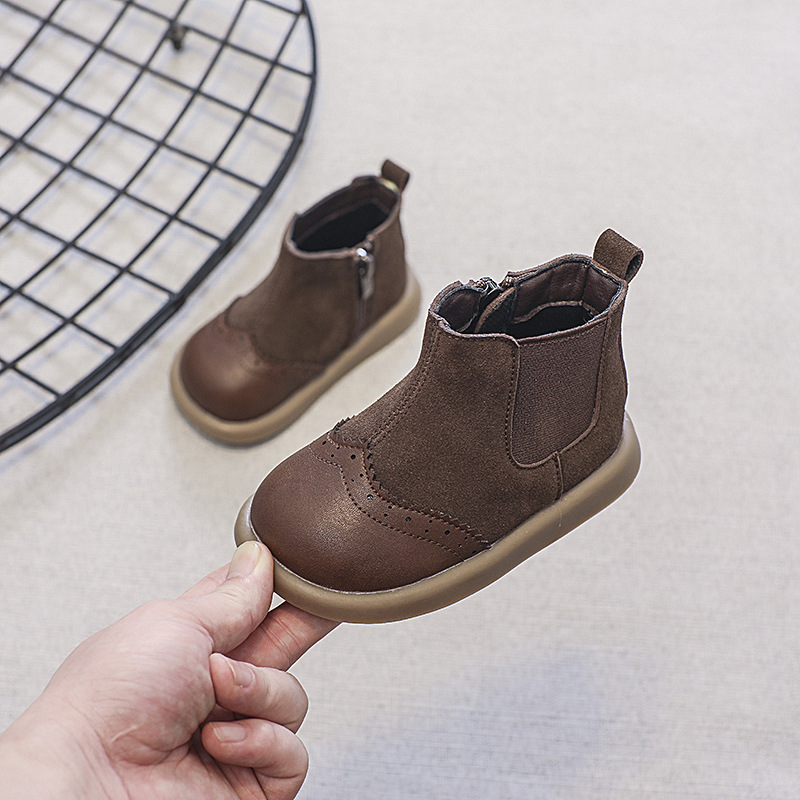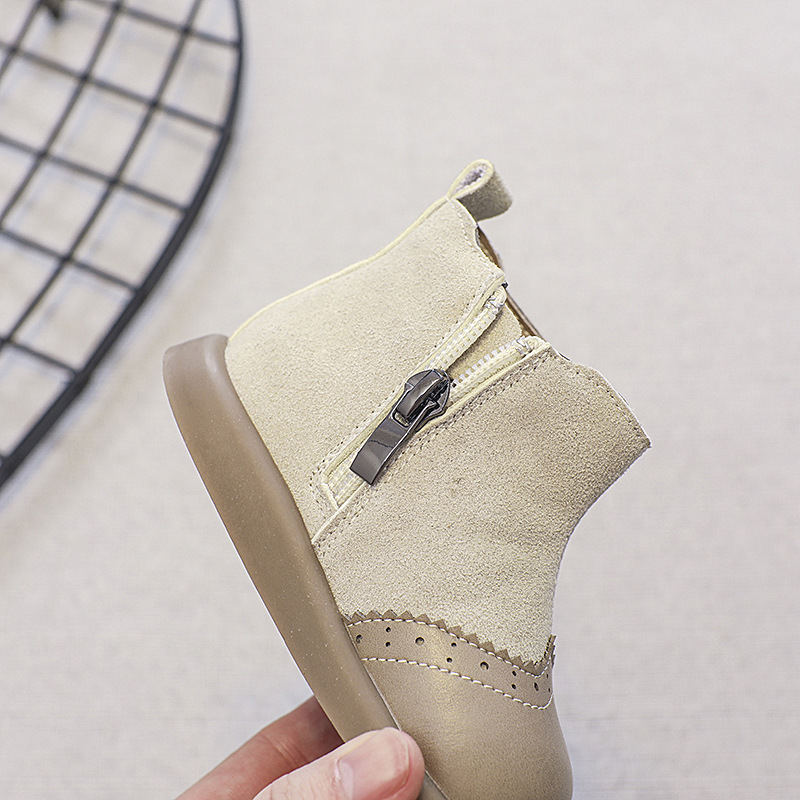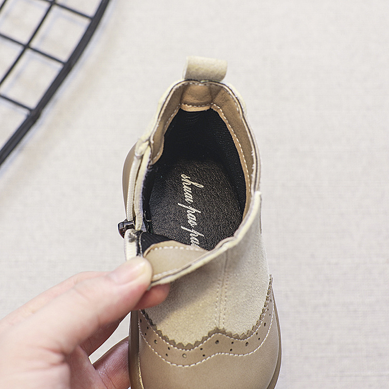 영국 스타일 빈티지 걸스 소프트 하단 짧은 부츠 패션 소년 패션 부츠 어린이 벨벳 스티칭 사이드 지퍼 부츠