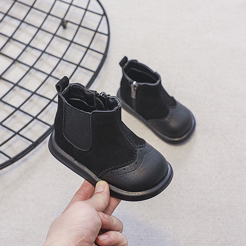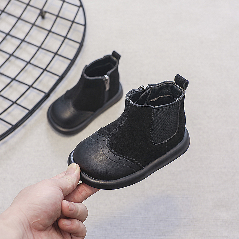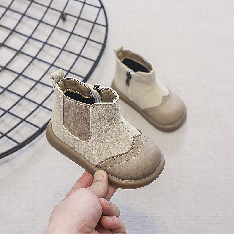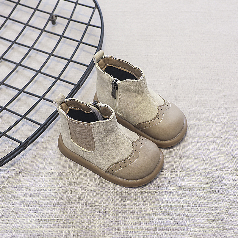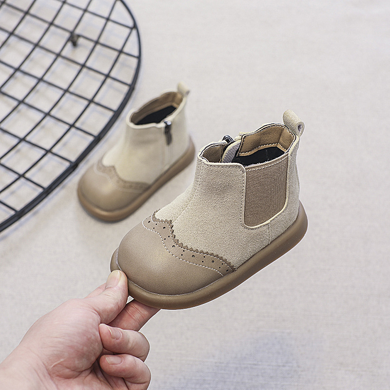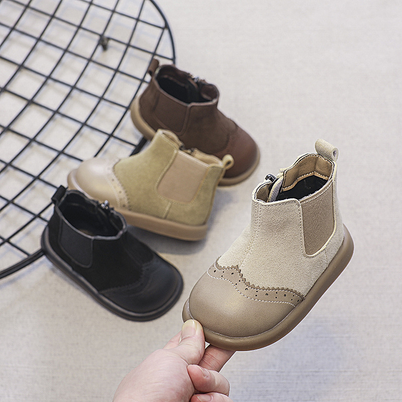 영국 스타일 빈티지 걸스 소프트 하단 짧은 부츠 패션 소년 패션 부츠 어린이 벨벳 스티칭 사이드 지퍼 부츠