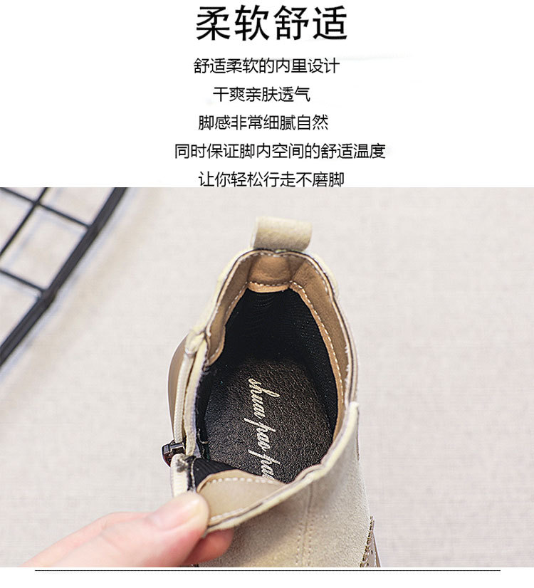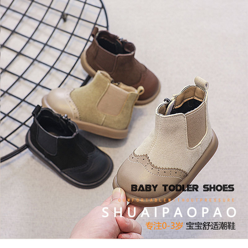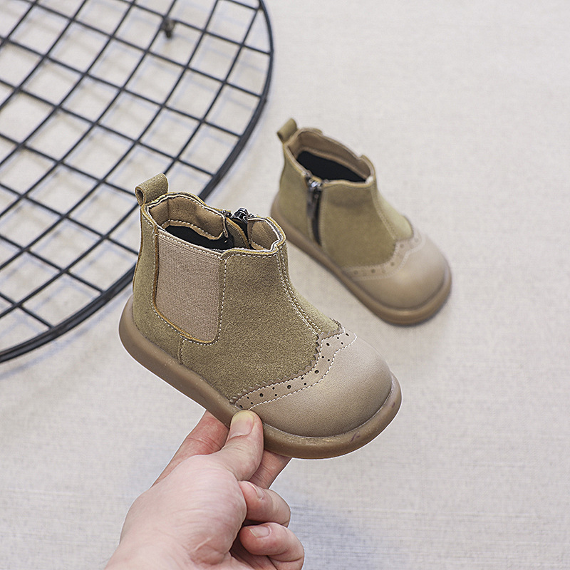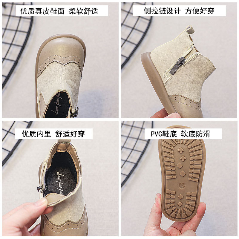 영국 스타일 빈티지 걸스 소프트 하단 짧은 부츠 패션 소년 패션 부츠 어린이 벨벳 스티칭 사이드 지퍼 부츠스토어 가기