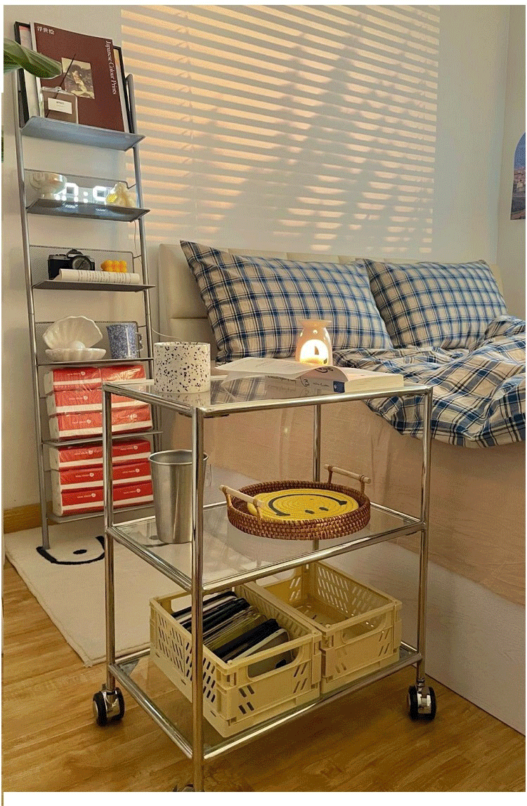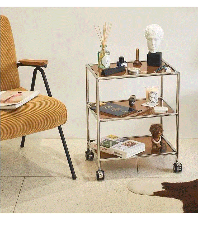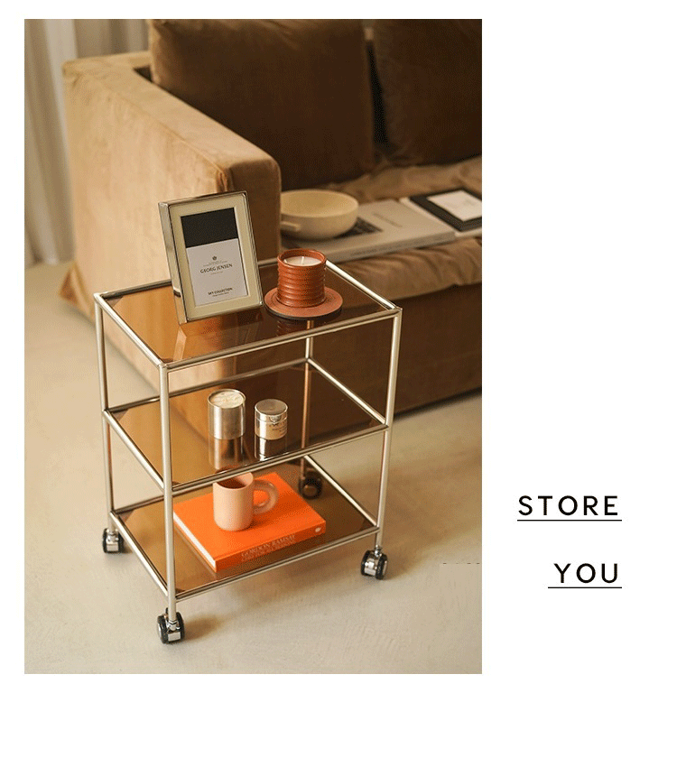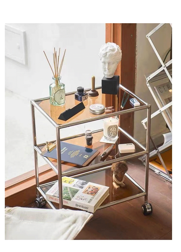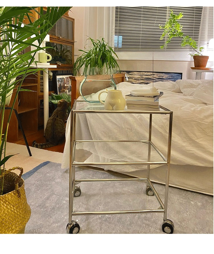 중세 유리 저장 랙 스테인레스 스틸 Ins 트롤리 휠 커피 테이블 움직일 수있는 소파 사이드 테이블 다이닝 자동차 교수형 명나라스토어 가기