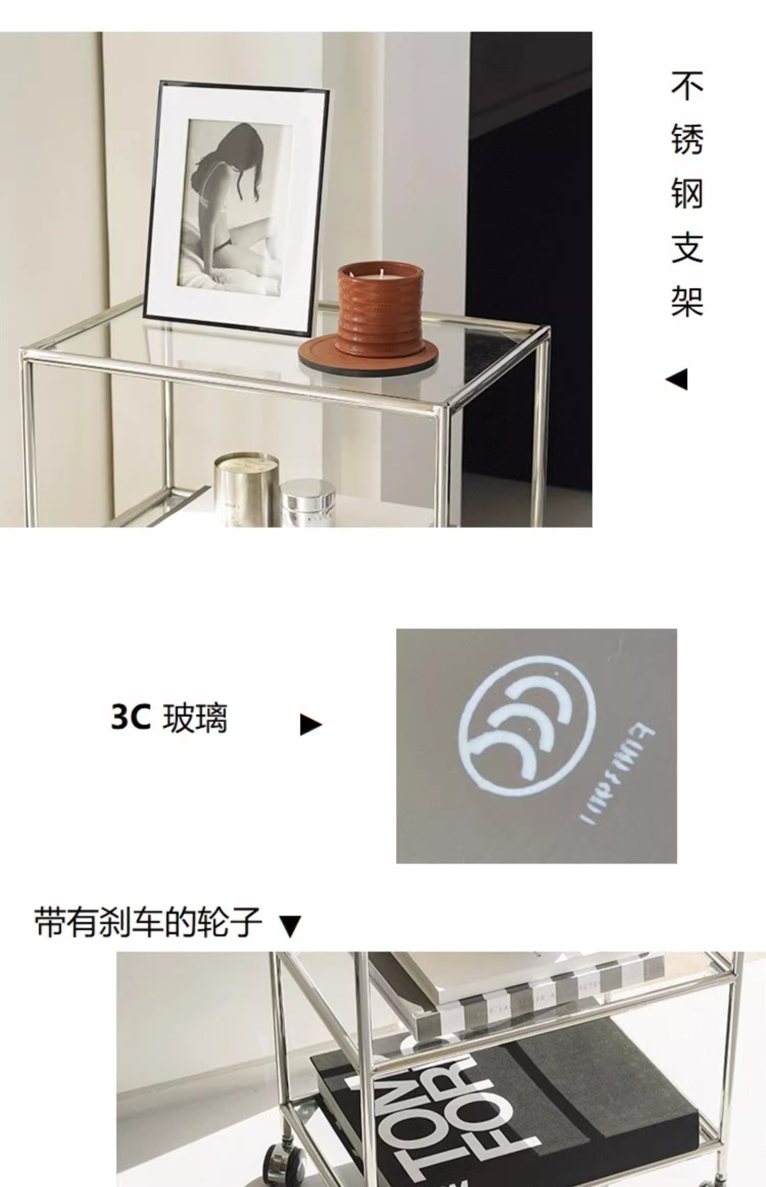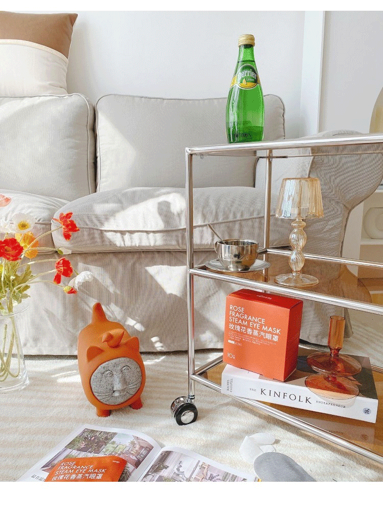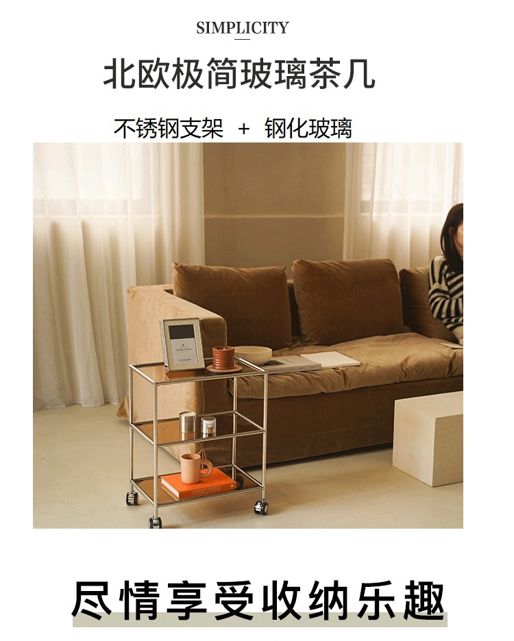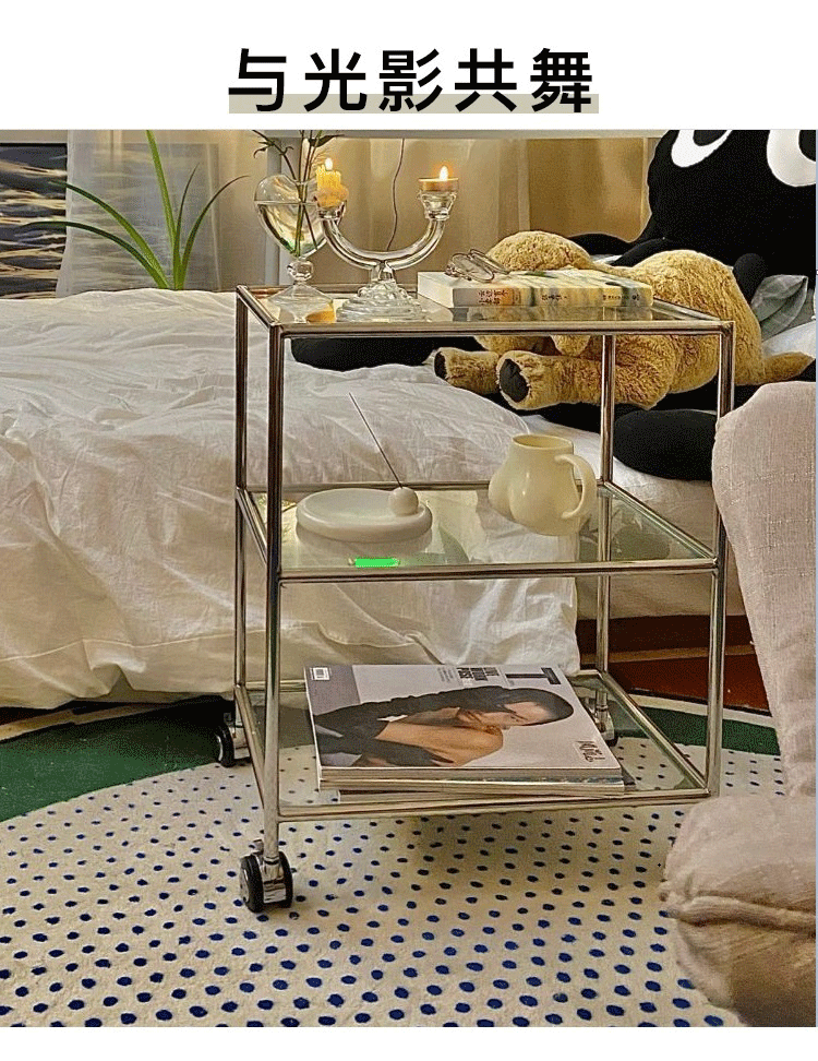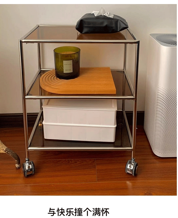 중세 유리 저장 랙 스테인레스 스틸 Ins 트롤리 휠 커피 테이블 움직일 수있는 소파 사이드 테이블 다이닝 자동차 교수형 명나라스토어 가기