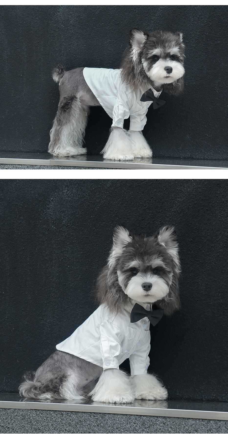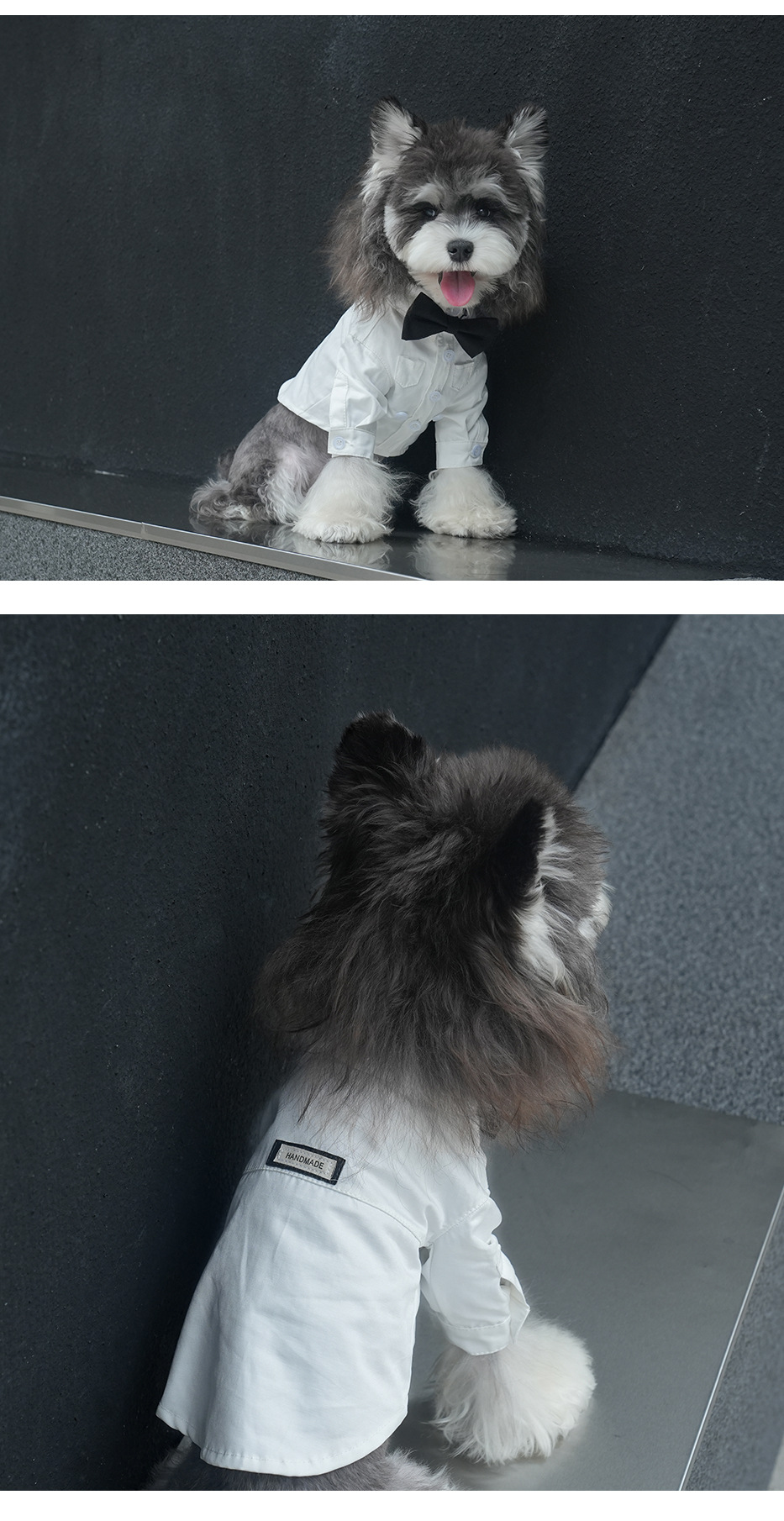 강아지 클래식 활 넥타이 화이트 셔츠 작은 개 애완 동물 곰 풍경 테디 봄과 가을 의류스토어 가기