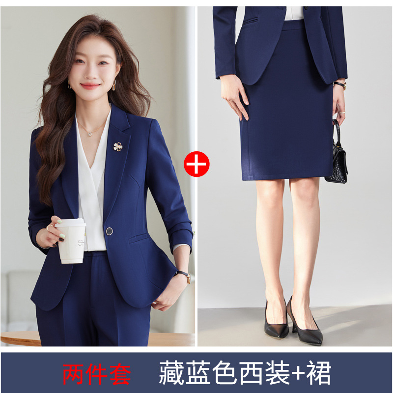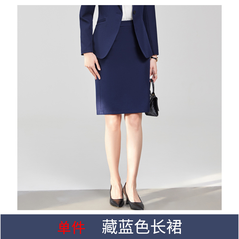 • 네이비 블루 재킷 + 3085 신축성 있는 중간 길이 스커트