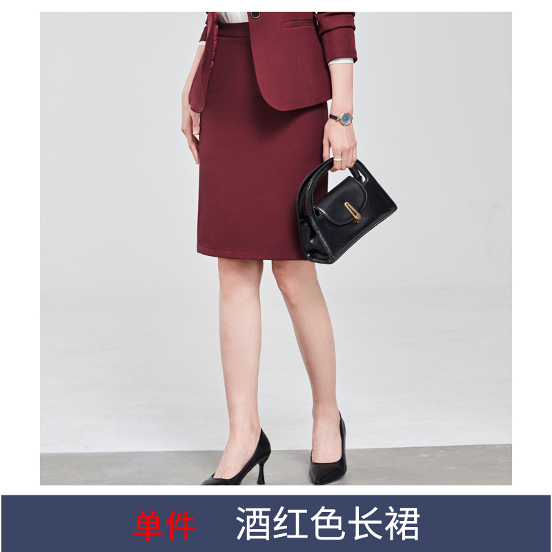 • 버건디 재킷 + 3085 엘라스틱 미디 스커트