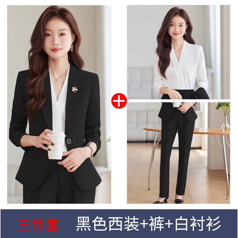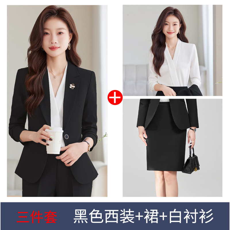 블랙 세트 세트 여성 원피스 가을 뉴 호텔 프론트 데스크 매니저 인터뷰 작업복 기질 전문 여성 작업복