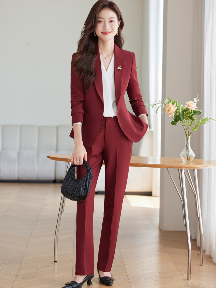 • 부르고뉴 재킷 + 5085 탄성 바지 + 689 흰색 셔츠