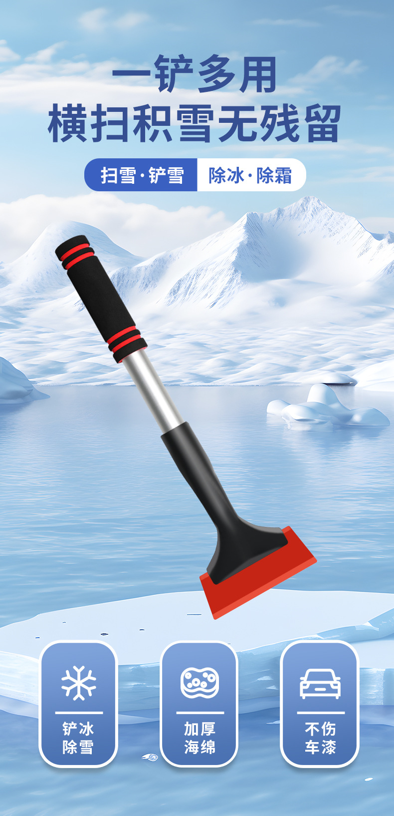 자동차용 알루미늄 합금 눈삽, 창문 눈 제거, 제설, 제빙, 서리 제거 다기능 눈삽스토어 가기