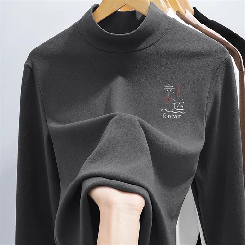 독일 벨벳 바닥 셔츠 남성용 겨울 칼라 슬림 탑 2024 새 기모 따뜻한 하프 하이 칼라 긴 소매 티셔츠스토어 가기