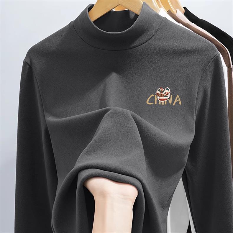 독일 벨벳 바닥 셔츠 남성용 겨울 칼라 슬림 탑 2024 새 기모 따뜻한 하프 하이 칼라 긴 소매 티셔츠