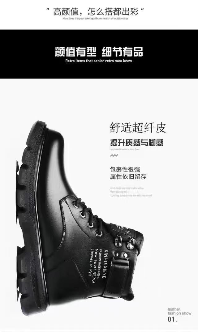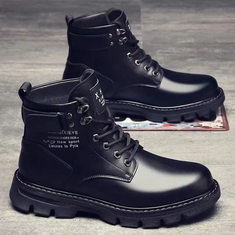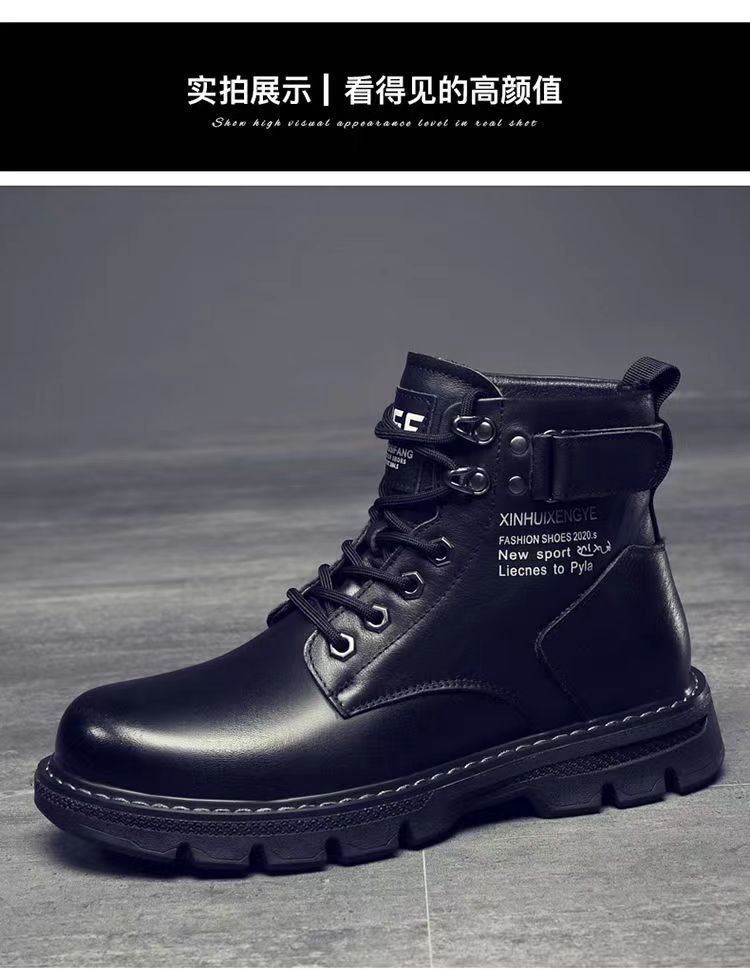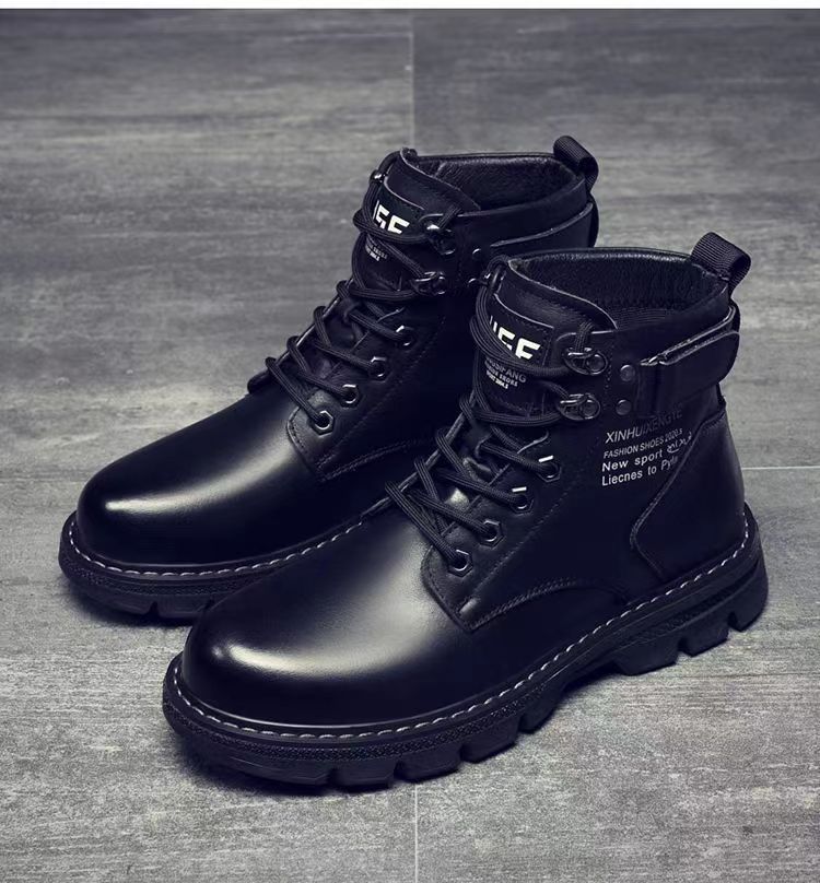 남성 신발 마틴 가죽 부츠 영국 2025 벨벳 코튼 신발 가죽 신발 캐주얼 새로운 하이 탑 남성 높이 증가 작업 부츠스토어 가기
