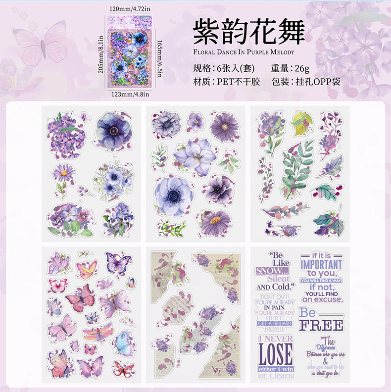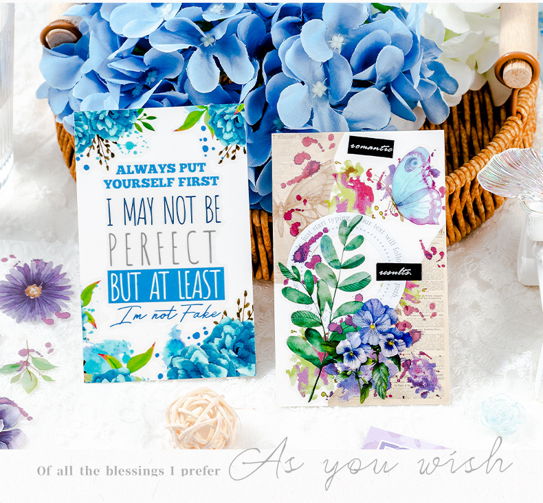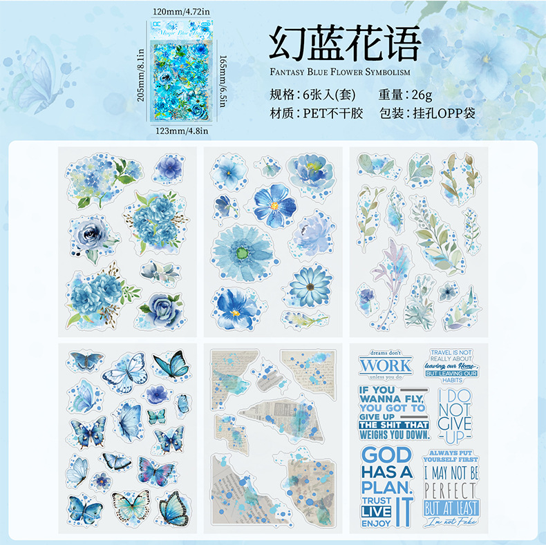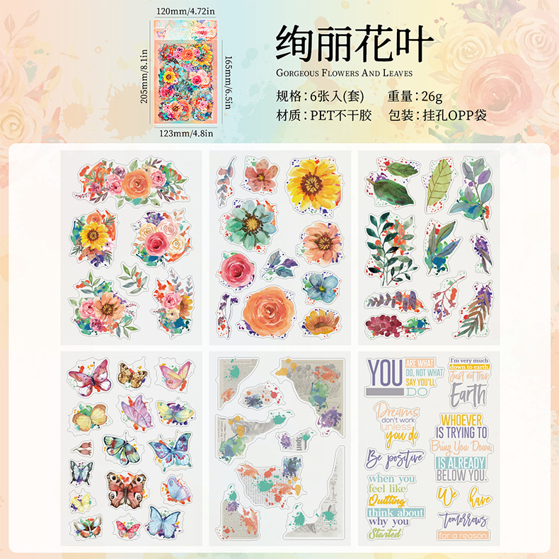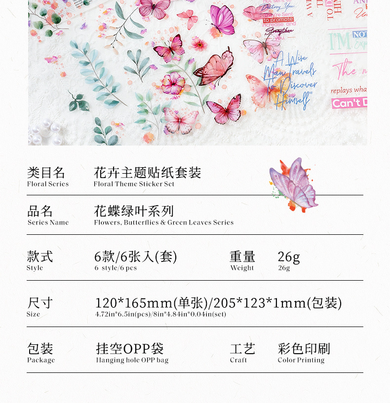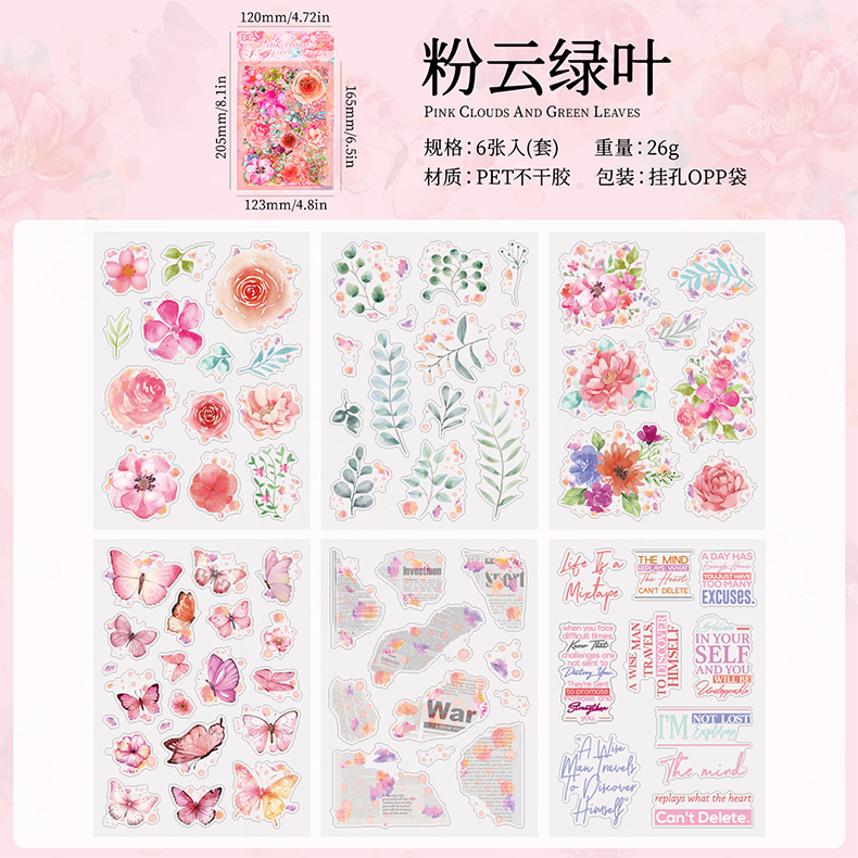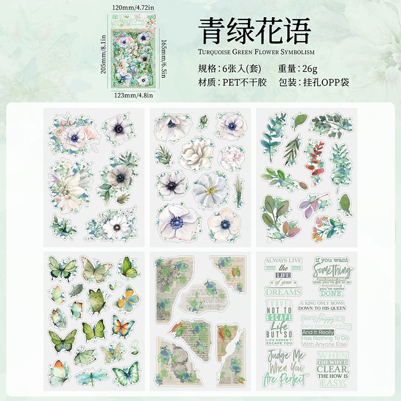 꽃 나비 녹색 잎 투명 방수 애완 동물 스티커 diy 손 계정 일기 스티커 복고풍 꽃 식물 나비 스티커