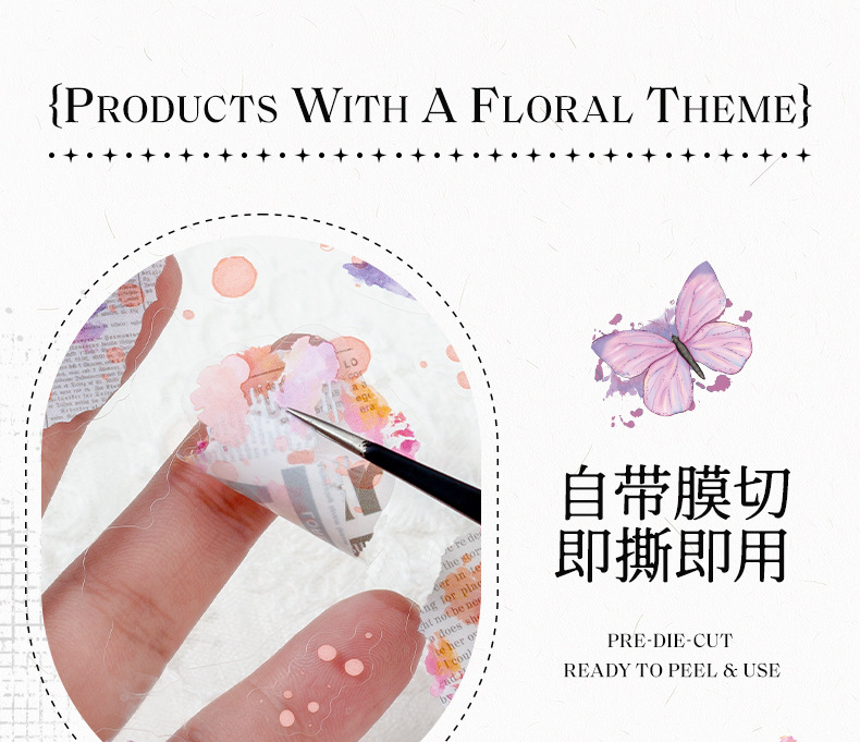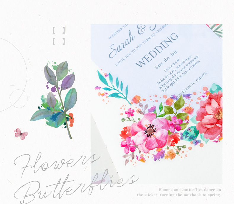 꽃 나비 녹색 잎 투명 방수 애완 동물 스티커 diy 손 계정 일기 스티커 복고풍 꽃 식물 나비 스티커스토어 가기