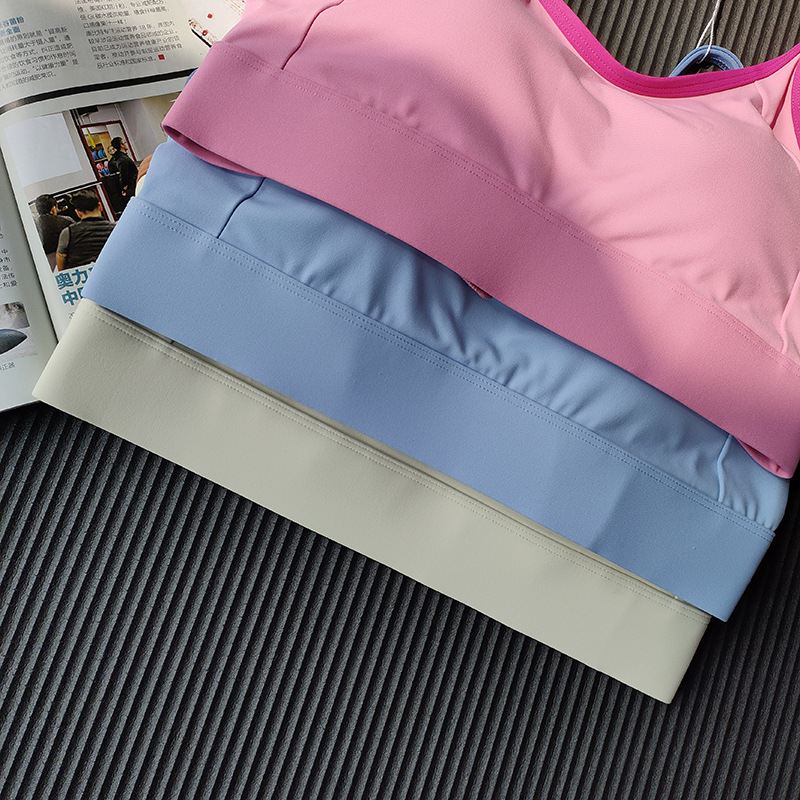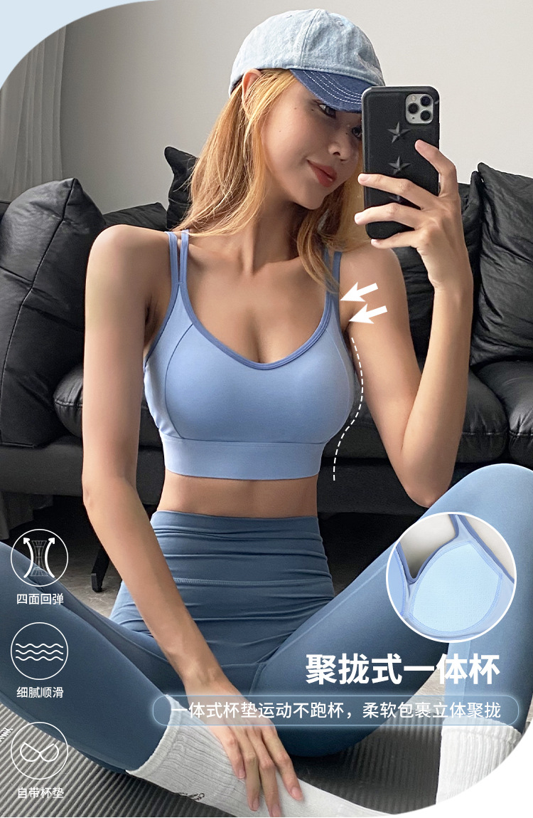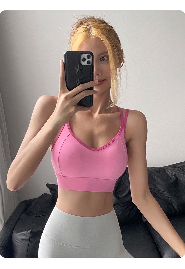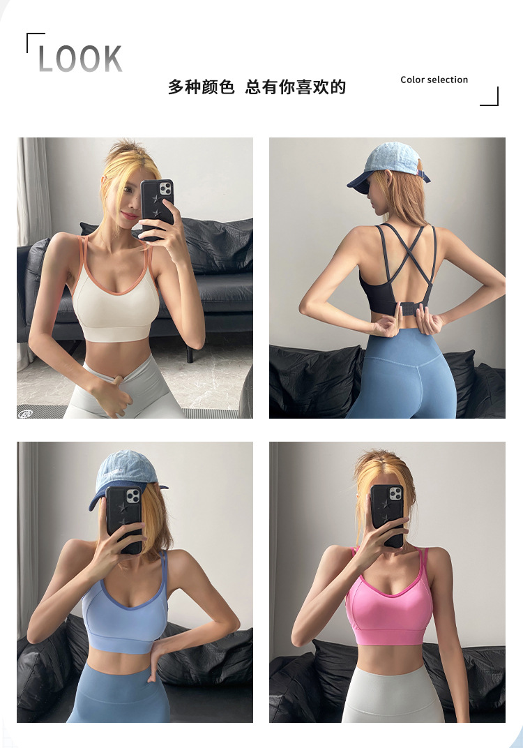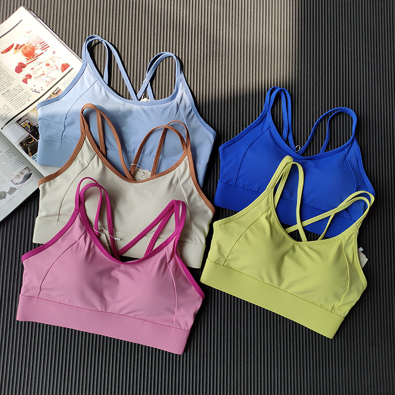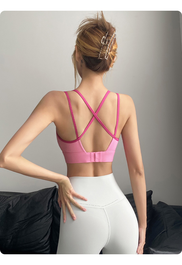 아름다운 백 콘트라스트 컬러 전문 스포츠 속옷 여성 충격 방지 러닝 요가 조끼 빠른 건조 고정 원피스 필라테스 브라