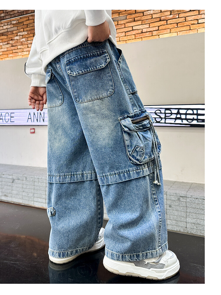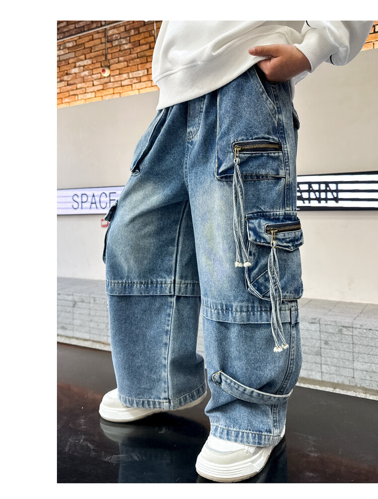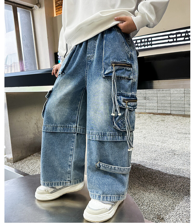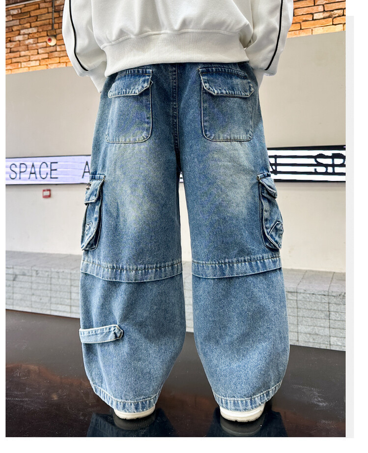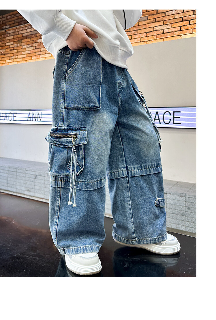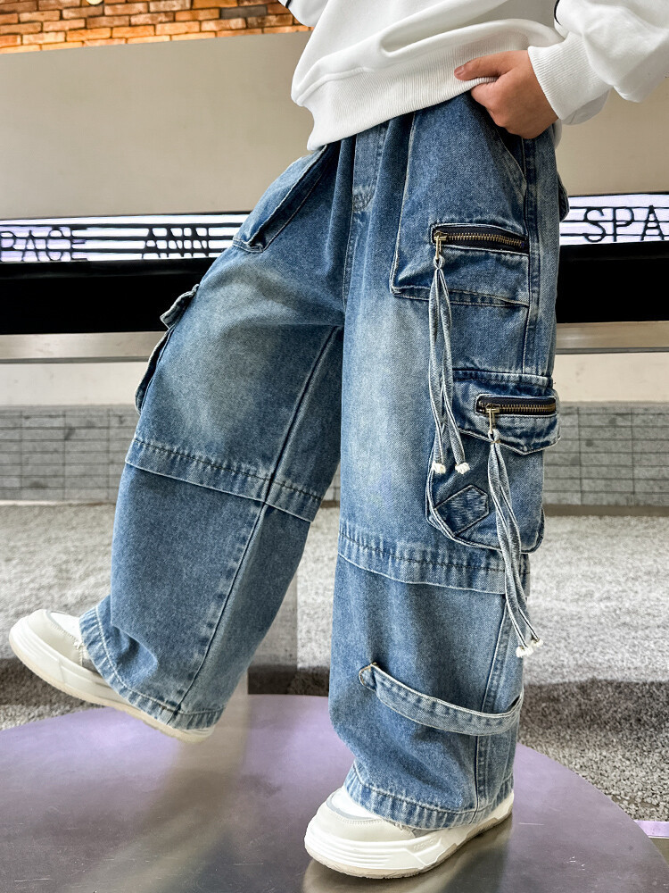 국경 간 소년 한국 청바지 어린이 힙합 스타일 힙합 크레인 바지 큰 소년의 봄과 가을 스트레이트 다리 넓은 다리 바지스토어 가기