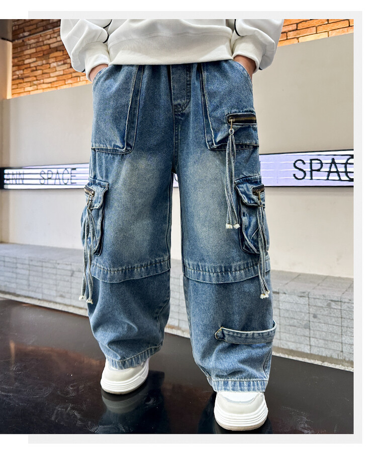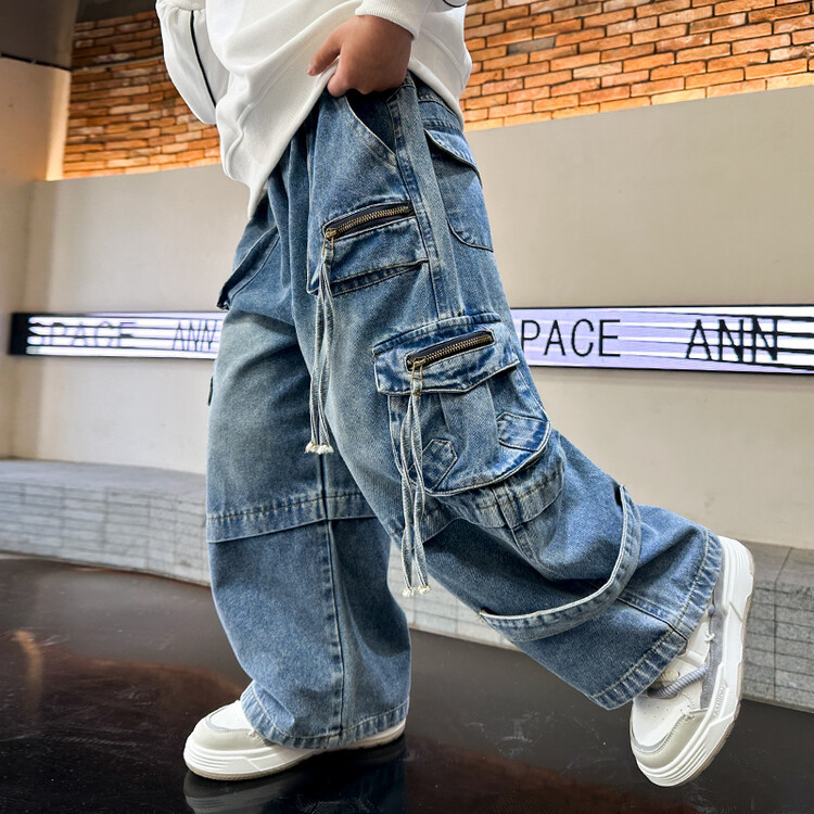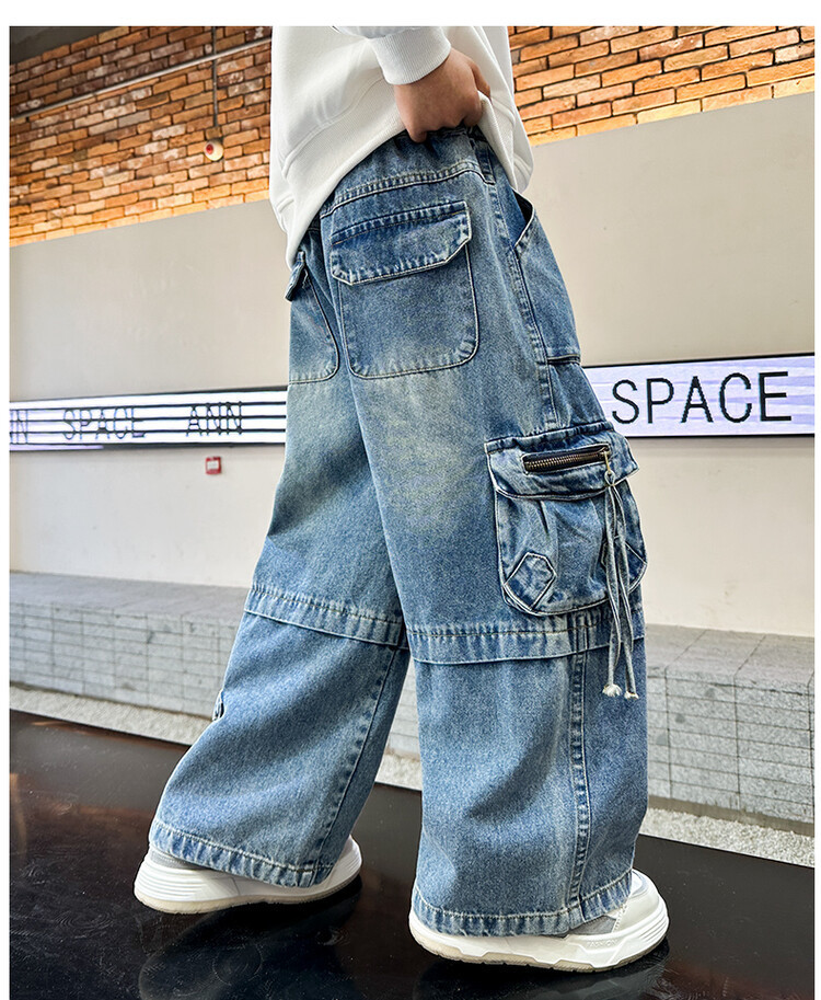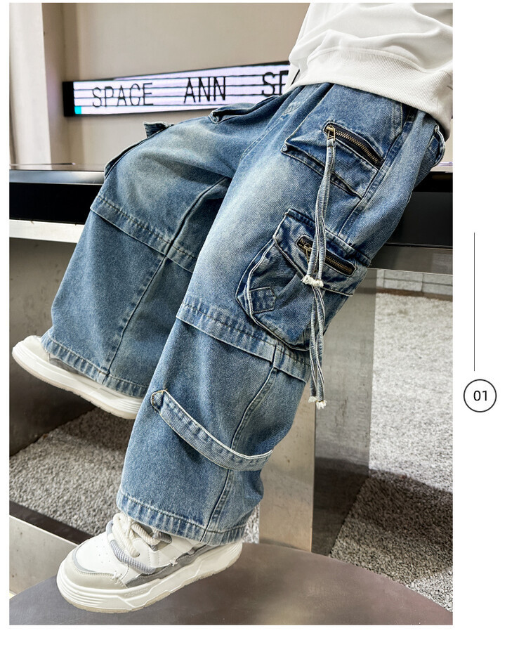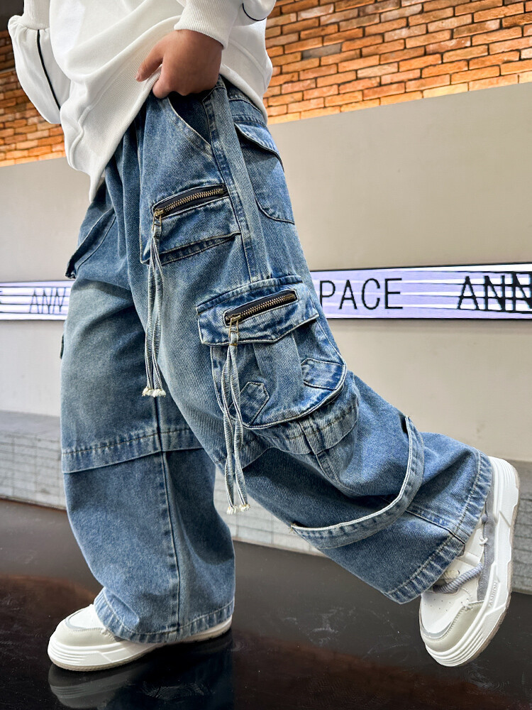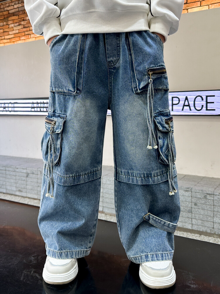 국경 간 소년 한국 청바지 어린이 힙합 스타일 힙합 크레인 바지 큰 소년의 봄과 가을 스트레이트 다리 넓은 다리 바지스토어 가기