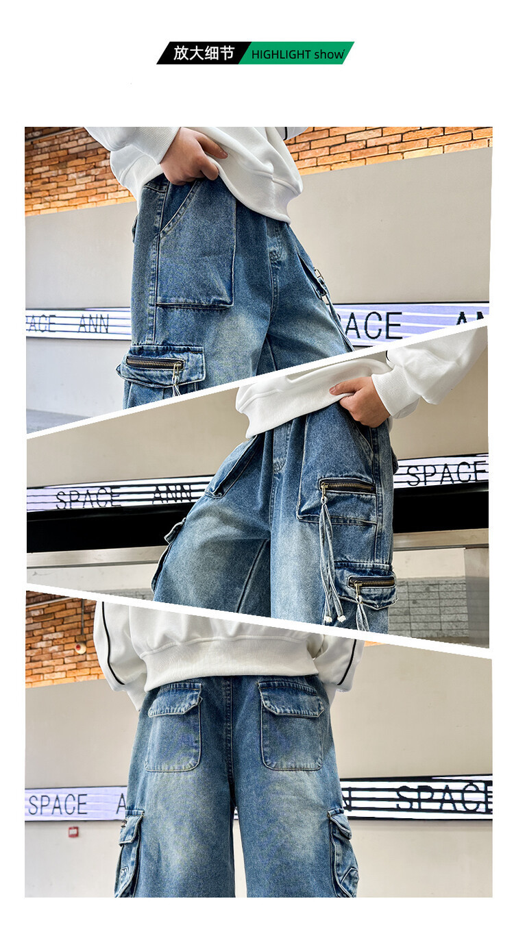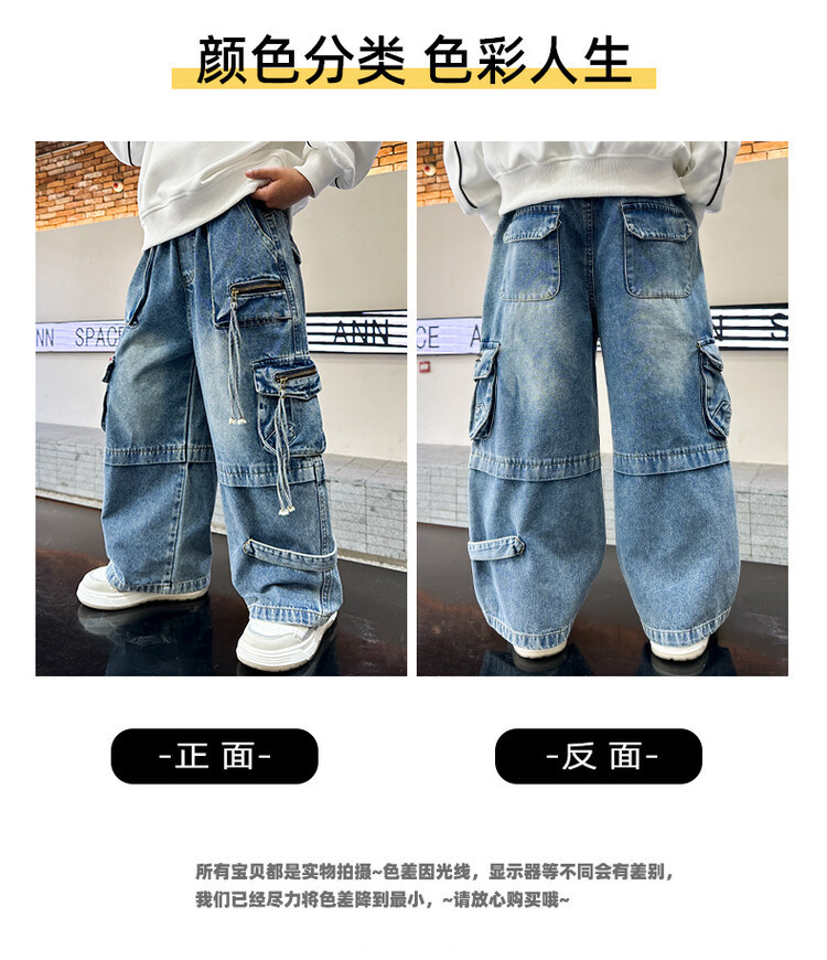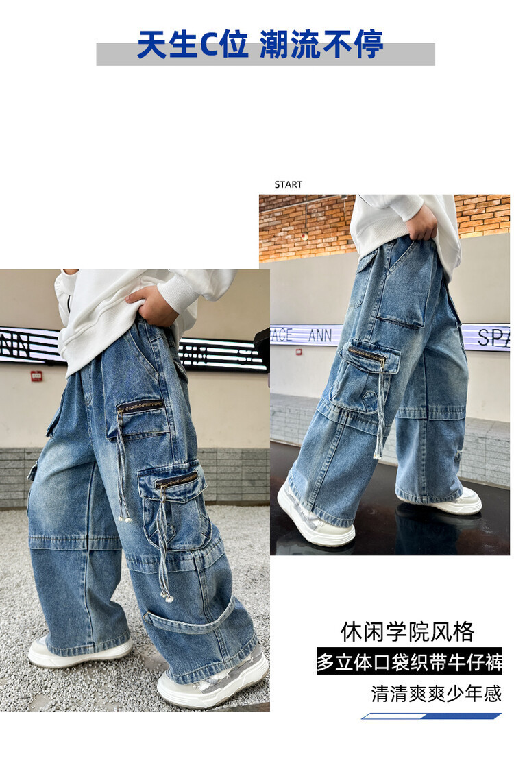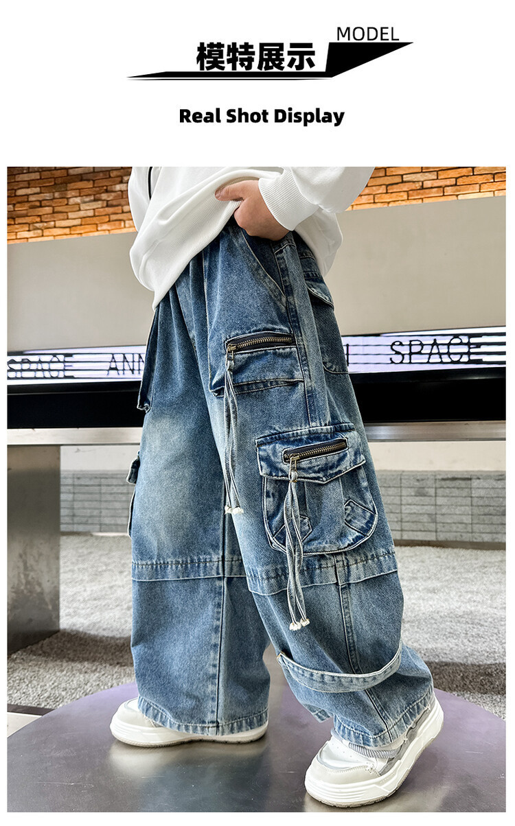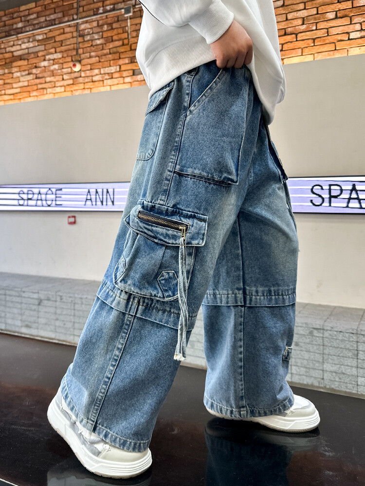 국경 간 소년 한국 청바지 어린이 힙합 스타일 힙합 크레인 바지 큰 소년의 봄과 가을 스트레이트 다리 넓은 다리 바지스토어 가기