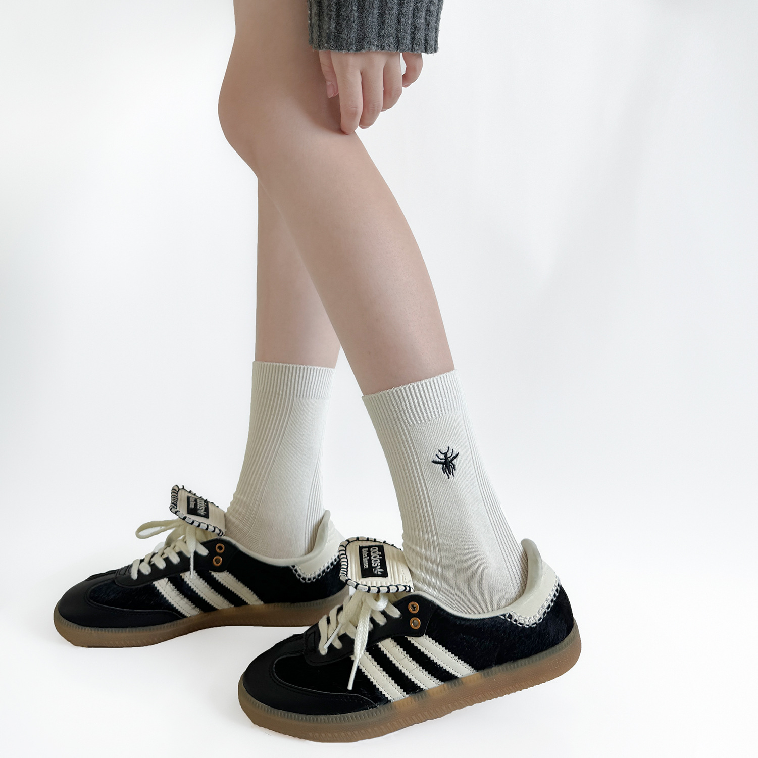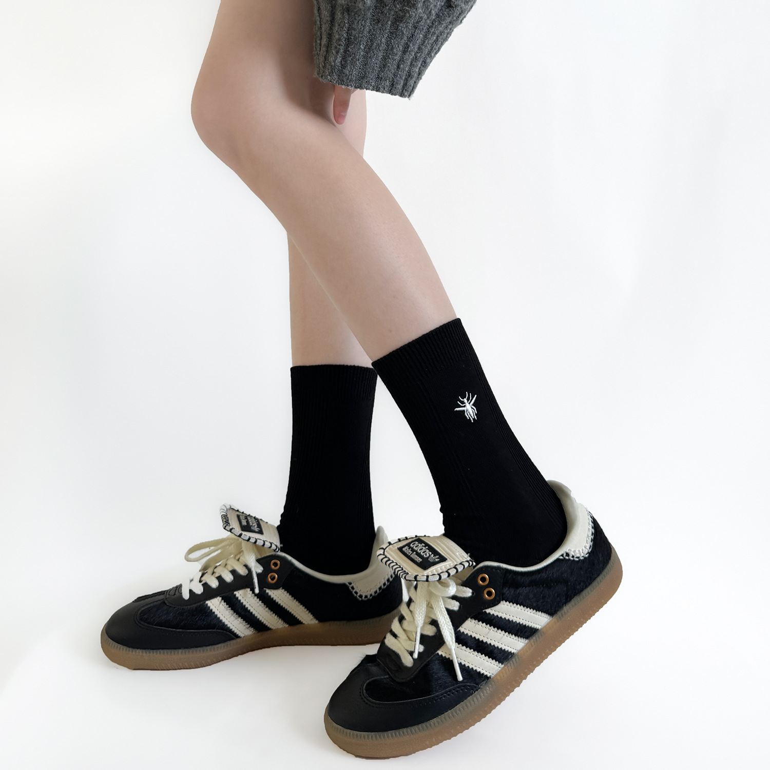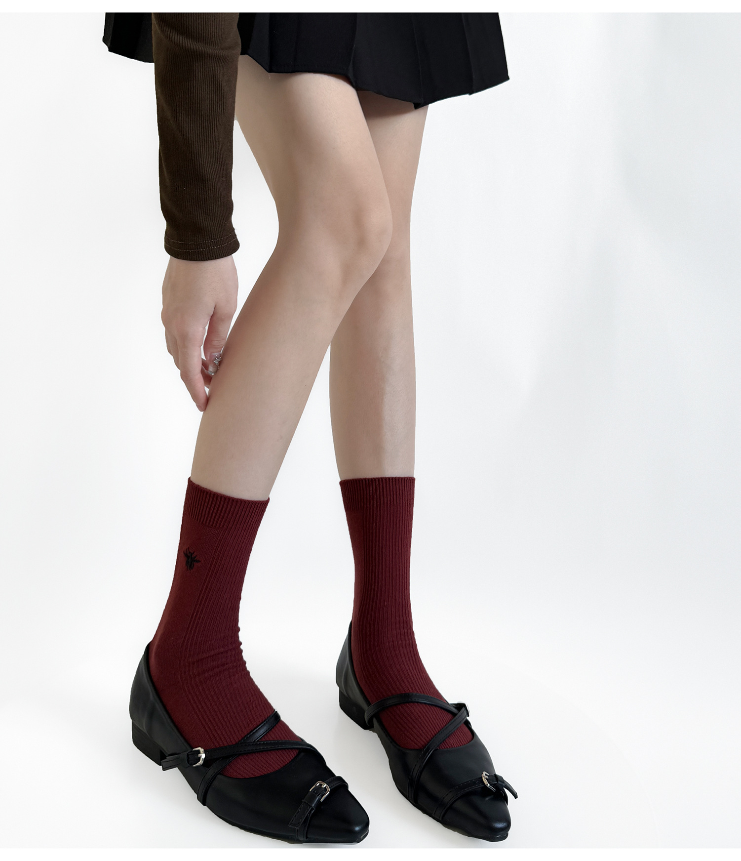가을과 겨울 새로운 유럽 수 놓은 꿀벌 중간 크기 양말 안코라 레드 빈티지 패션 면 양말