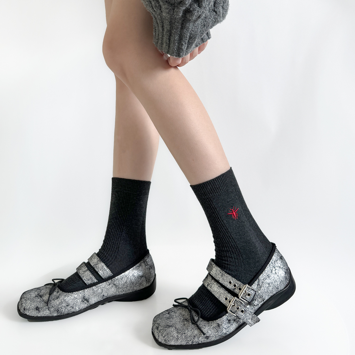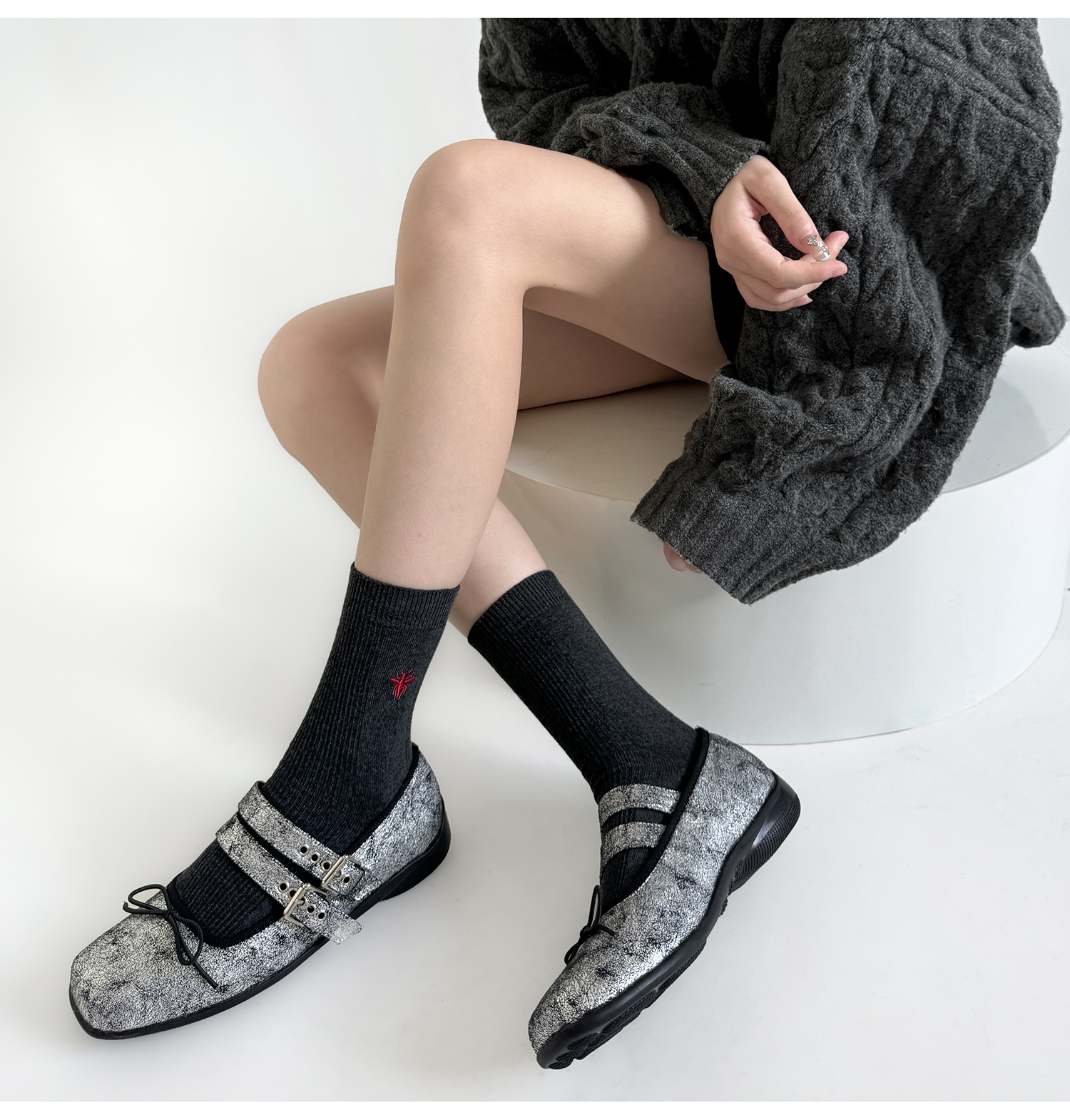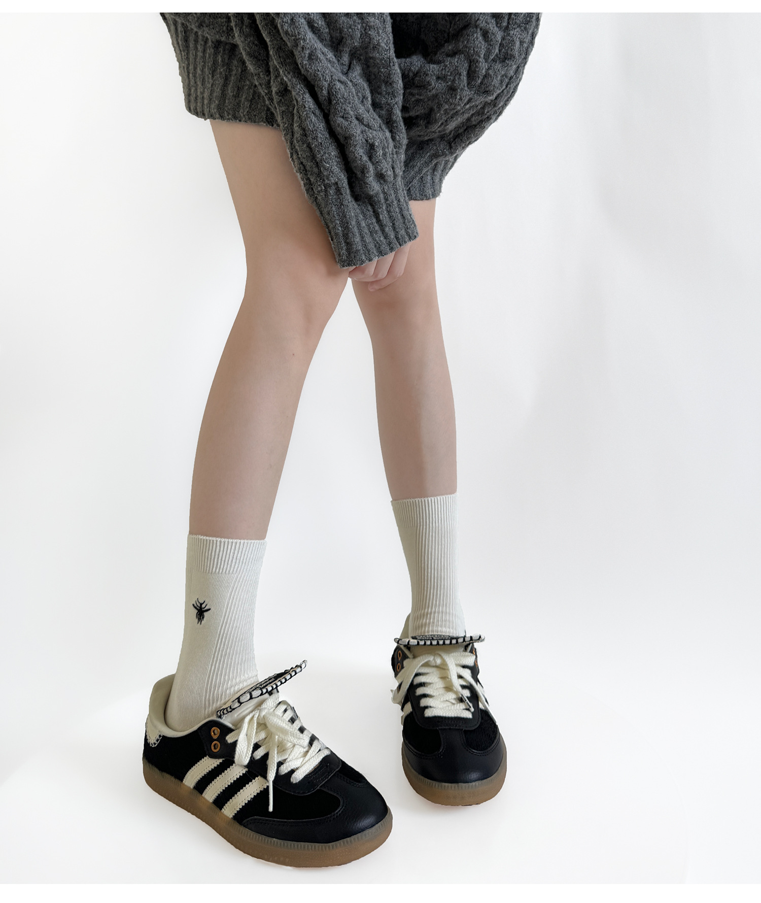 가을과 겨울 새로운 유럽 수 놓은 꿀벌 중간 크기 양말 안코라 레드 빈티지 패션 면 양말