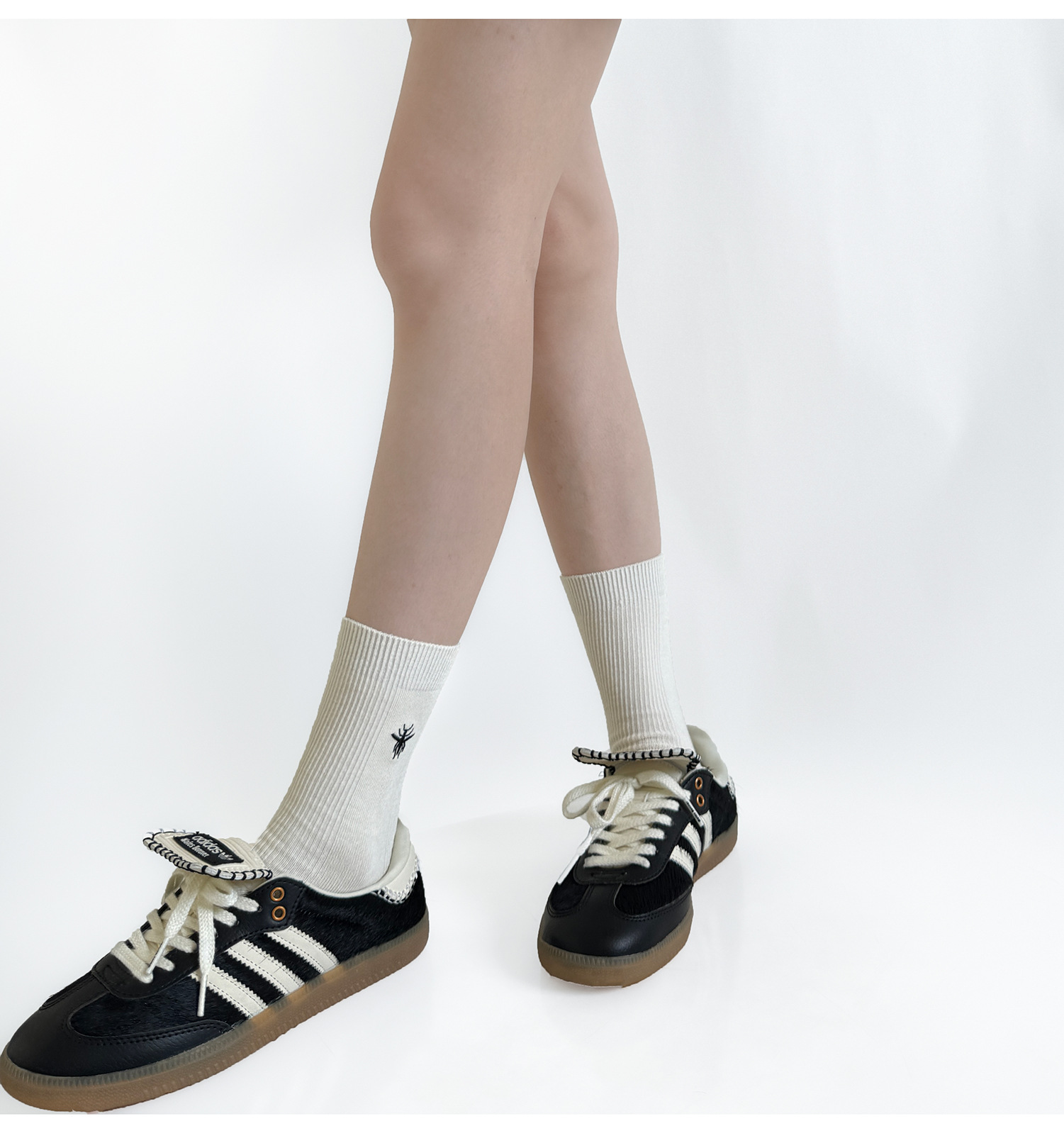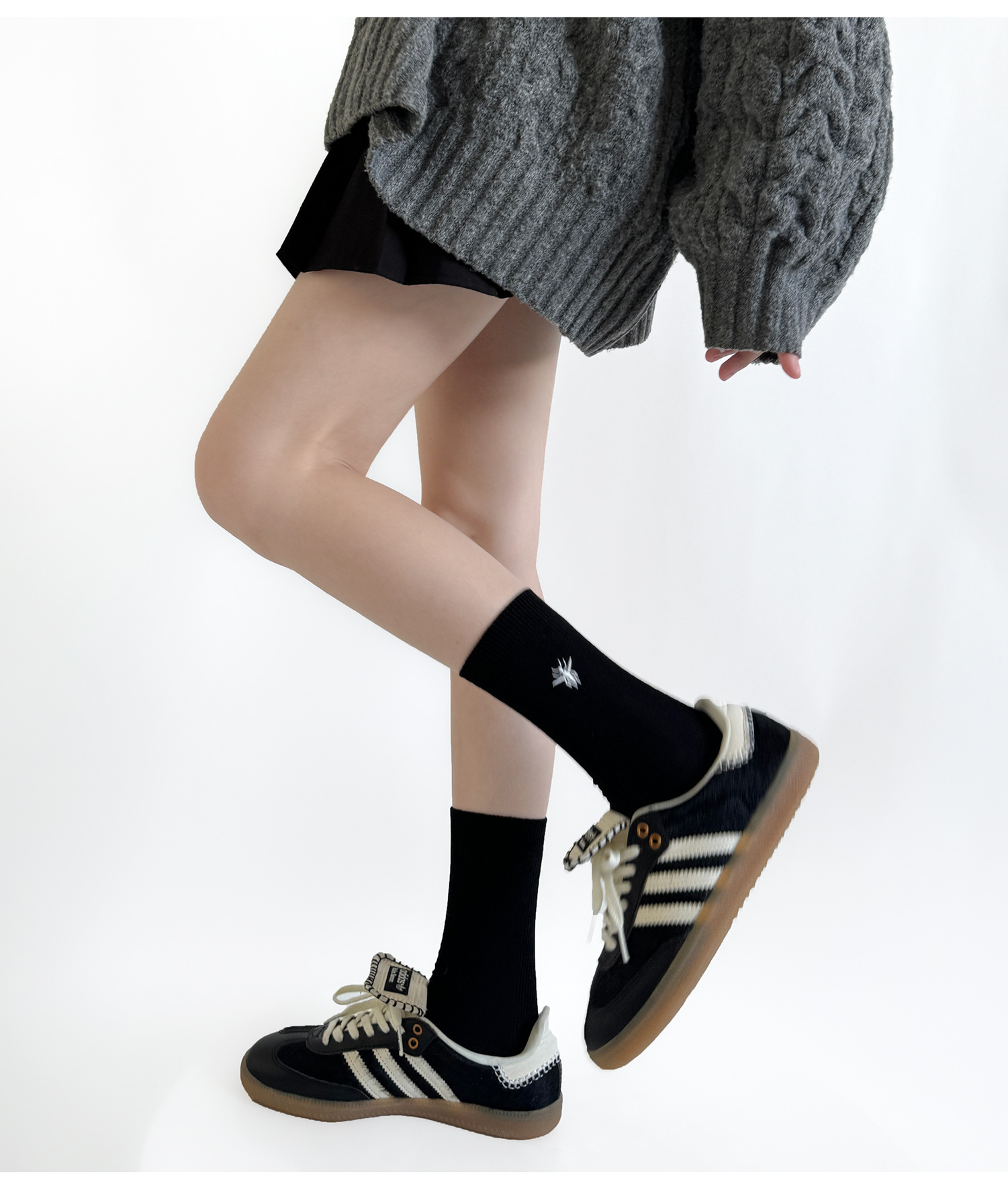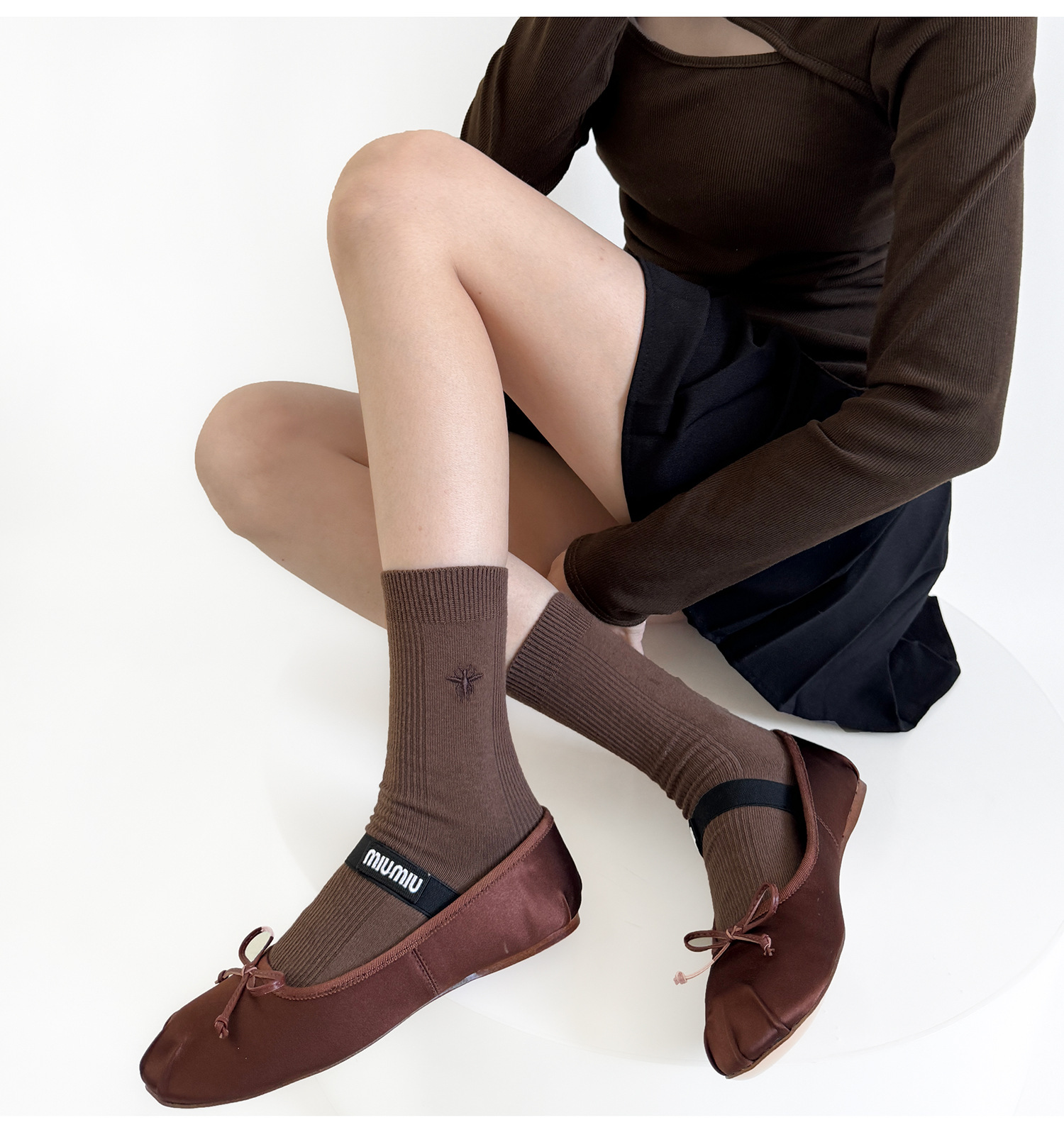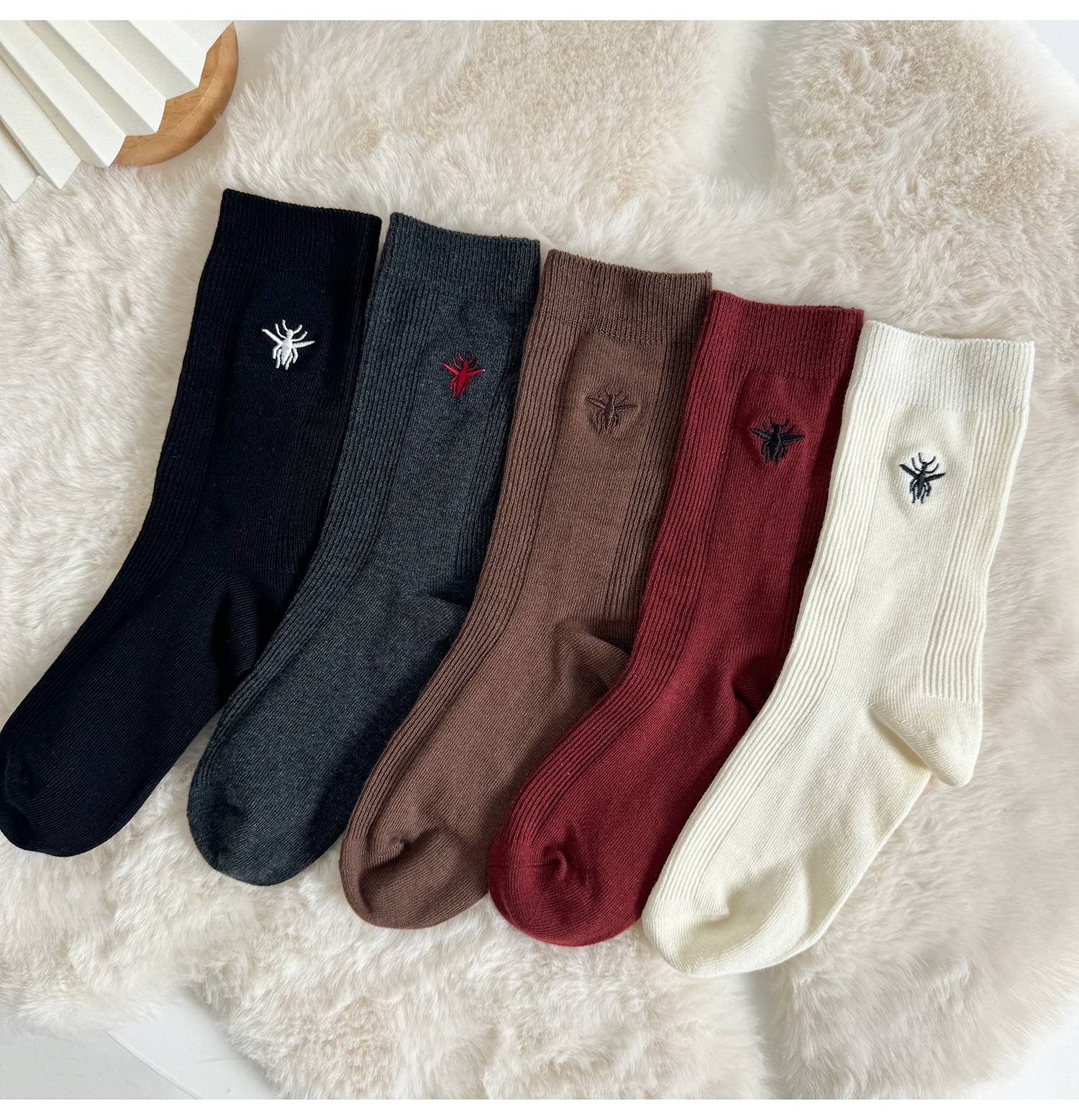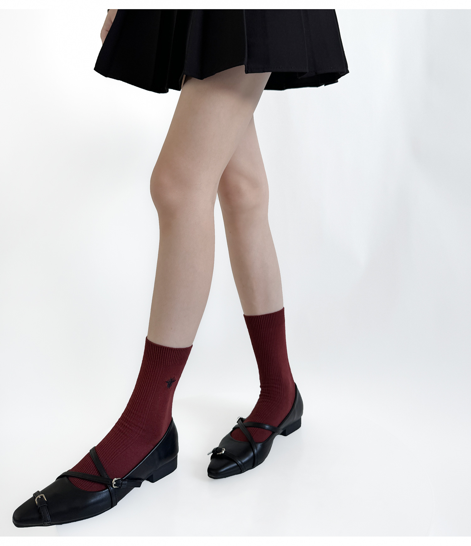 가을과 겨울 새로운 유럽 수 놓은 꿀벌 중간 크기 양말 안코라 레드 빈티지 패션 면 양말스토어 가기