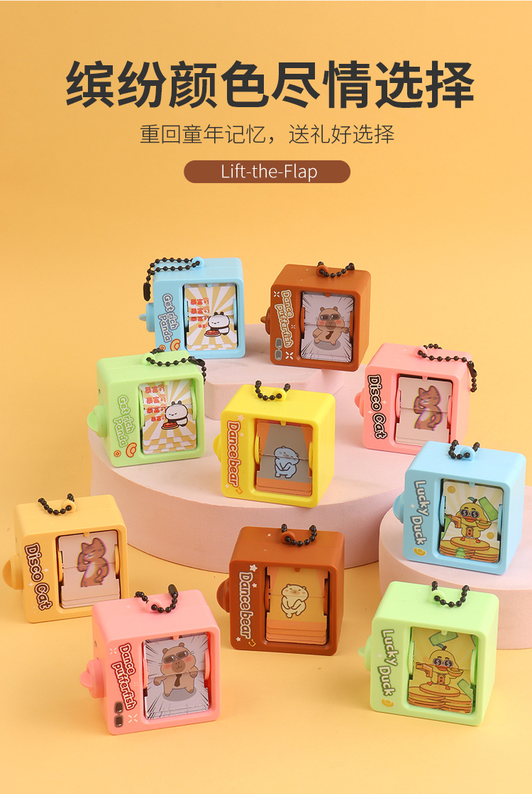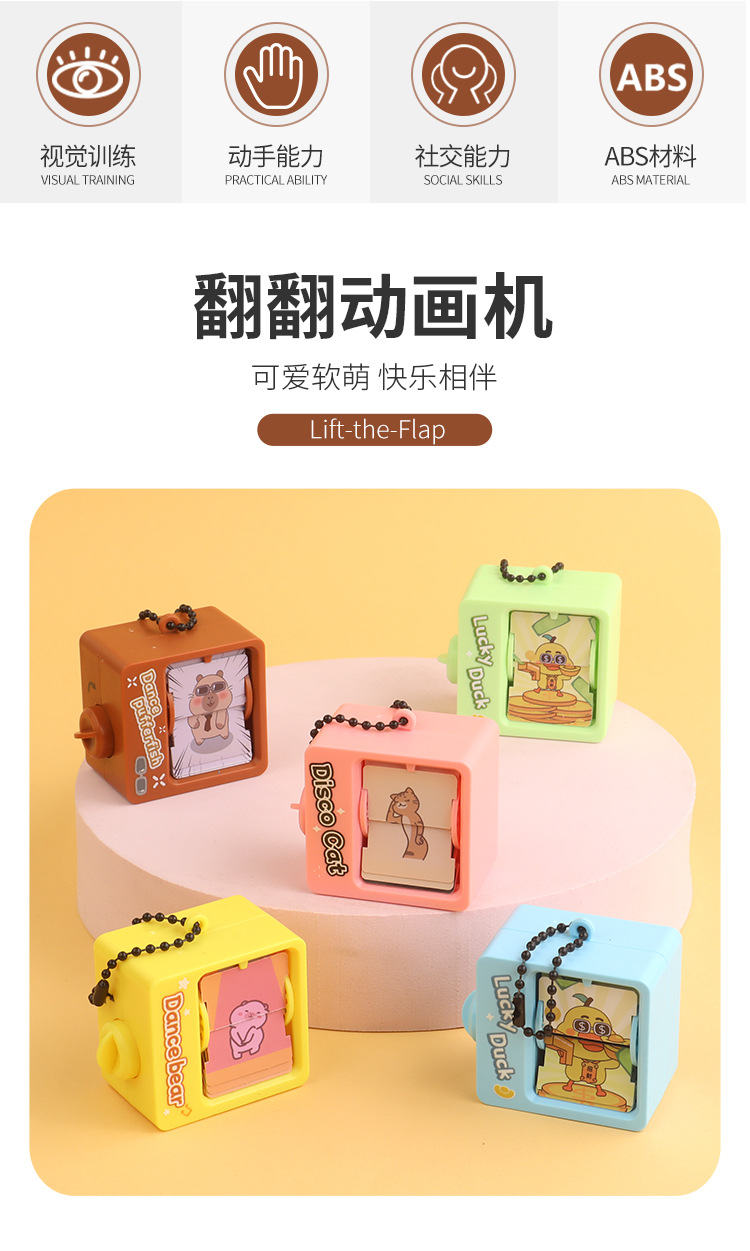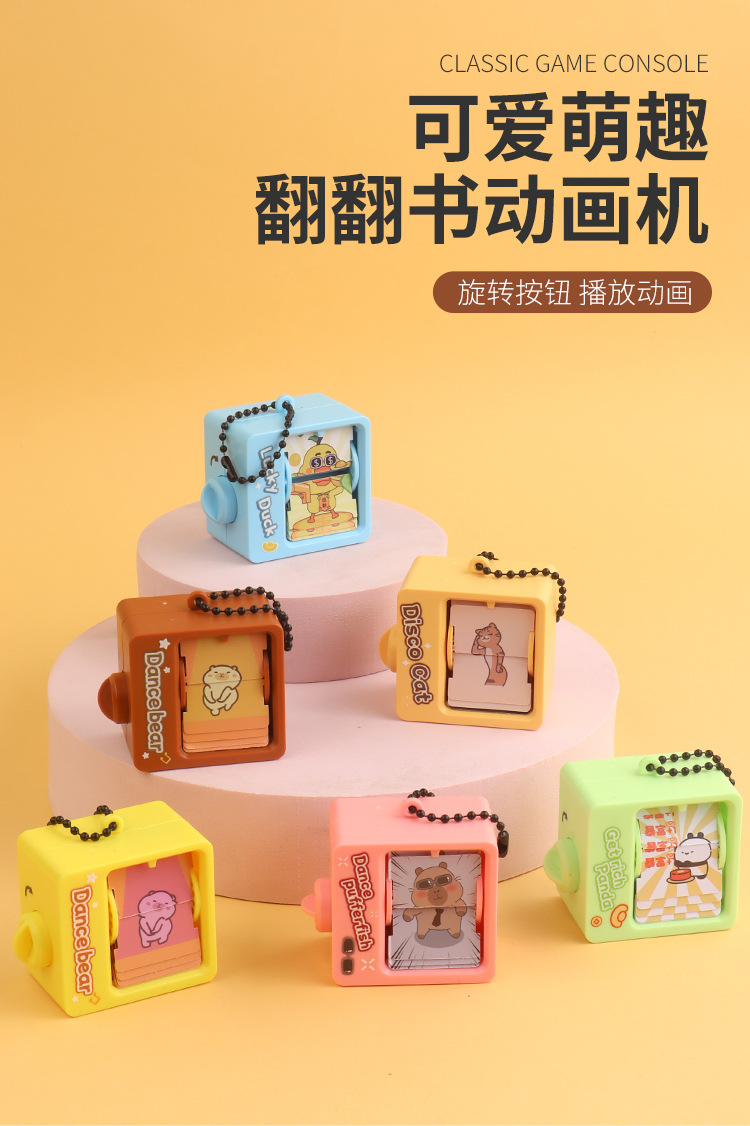 만화 귀여운 애완 동물 플립 북 카피바라 애니메이션 기계 크리 에이 티브 키 체인 학교 가방 펜던트 감압 장난감 작은 선물 도매