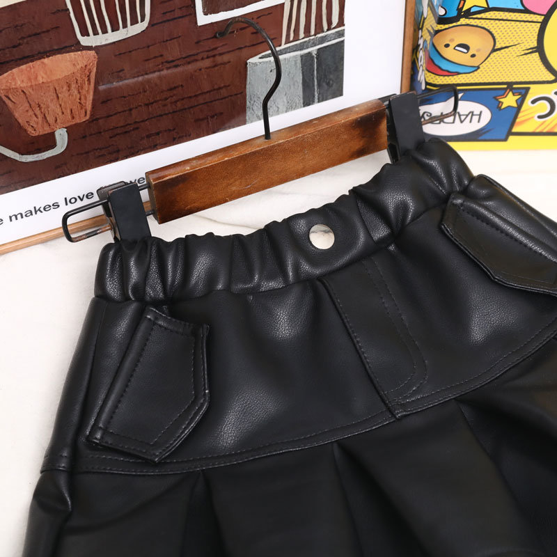 소녀의 가죽 치마 2024 년 가을과 겨울 새로운 서양식 어린이 아기 치마 어린 소녀의 주름 치마 A-라인 치마