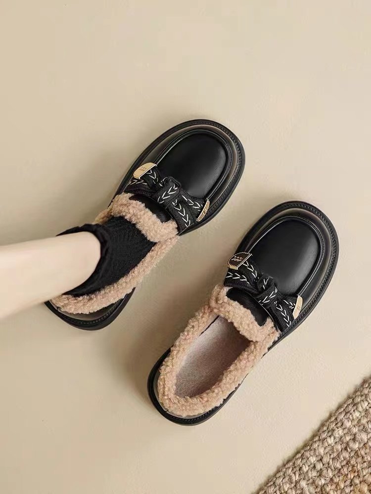 폭발 부드러운 가죽 블랙 기모 로퍼 여성 겨울 기모 따뜻한 영국 스타일 작은 가죽 신발 모피 싱글 레이어 신발 여성용