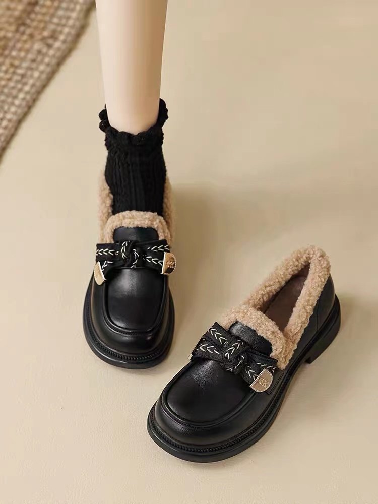 폭발 부드러운 가죽 블랙 기모 로퍼 여성 겨울 기모 따뜻한 영국 스타일 작은 가죽 신발 모피 싱글 레이어 신발 여성용스토어 가기
