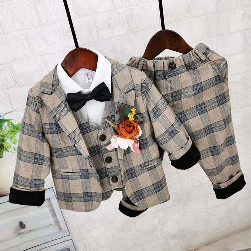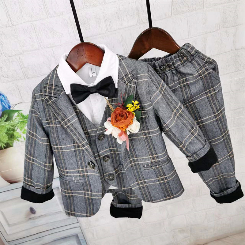 어린이 세트 세트 겨울 소년의 기모 4 피스 세트 플라워 보이 호스트 공연 옷 두꺼운 격자 무늬 트렌디스토어 가기