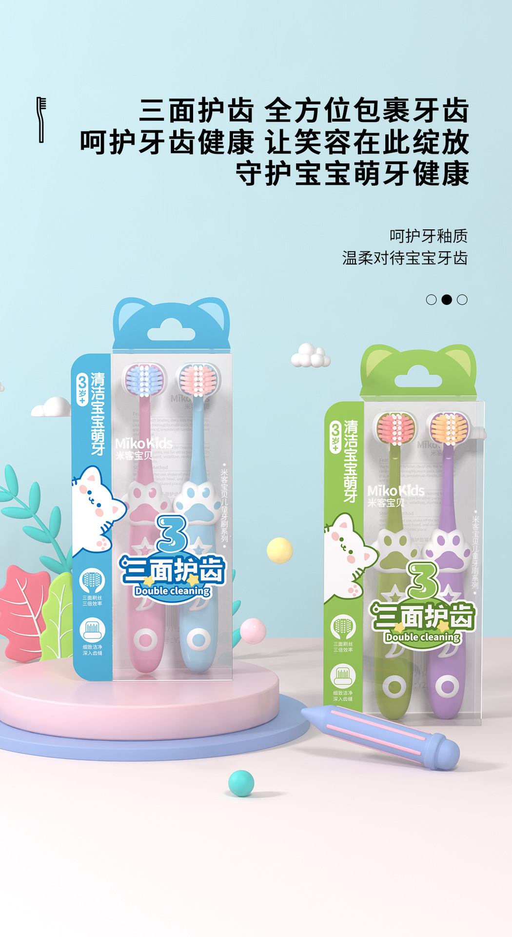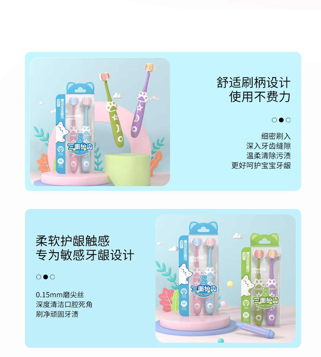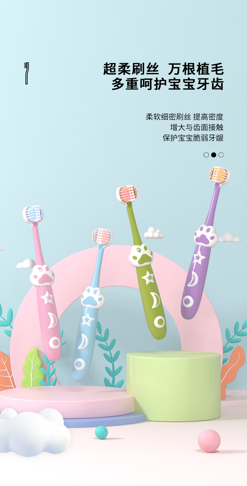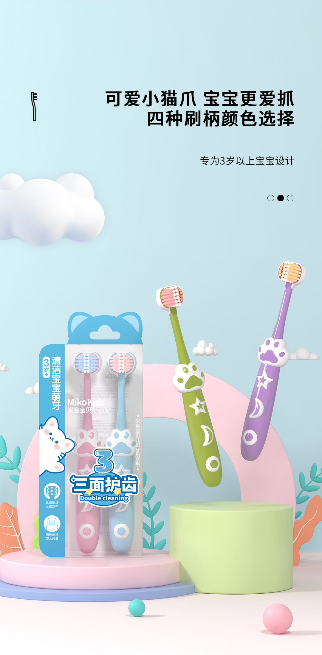 어린이 부드러운 강모 칫솔 3 면 치아 보호 칫솔 귀여운 고양이 발톱 모양 치아 청소 치은 보호 제조 업체 도매 더블