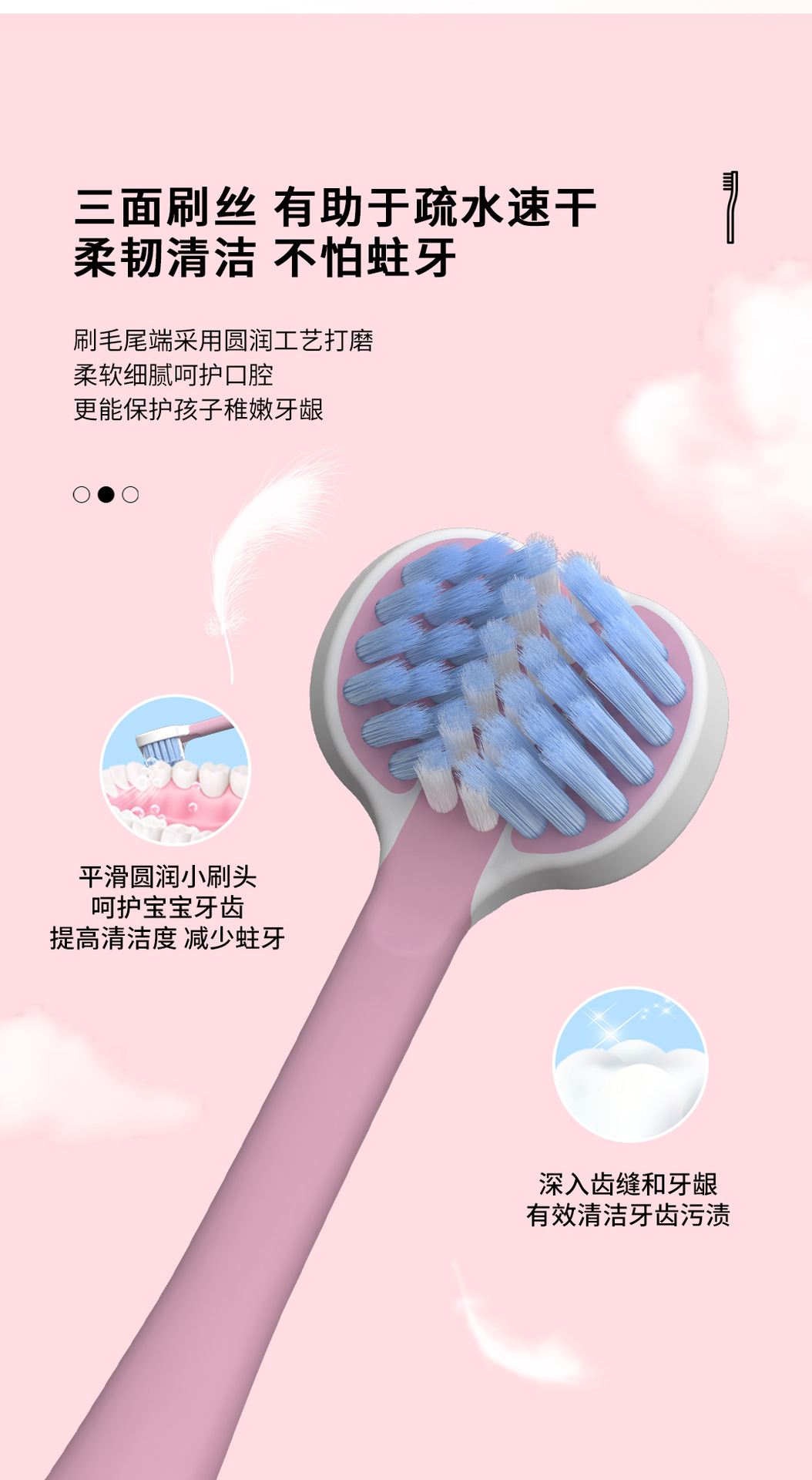 어린이 부드러운 강모 칫솔 3 면 치아 보호 칫솔 귀여운 고양이 발톱 모양 치아 청소 치은 보호 제조 업체 도매 더블스토어 가기