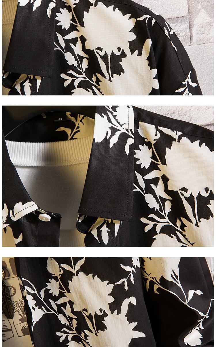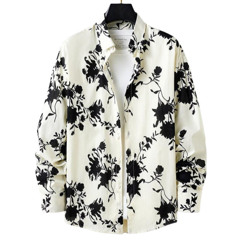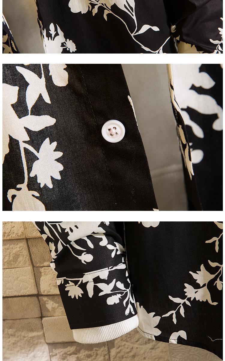 가을 새로운 유행 꽃 셔츠 봄과 가을 독특한 인쇄 캐주얼 느슨한 셔츠 이피 잘 생긴 청소년 남성 긴 셔츠