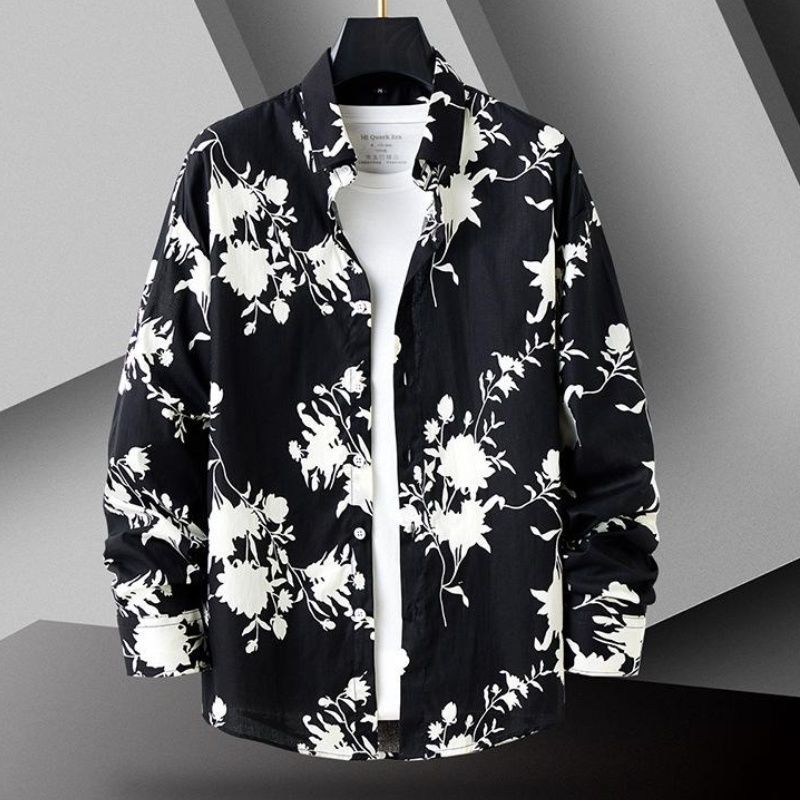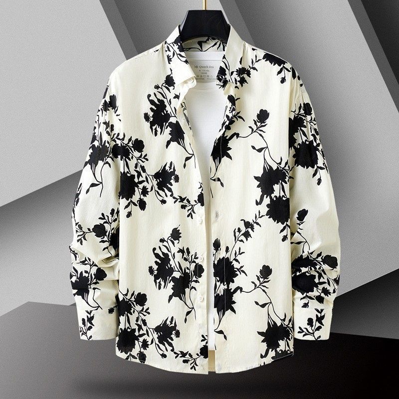 가을 새로운 유행 꽃 셔츠 봄과 가을 독특한 인쇄 캐주얼 느슨한 셔츠 이피 잘 생긴 청소년 남성 긴 셔츠스토어 가기