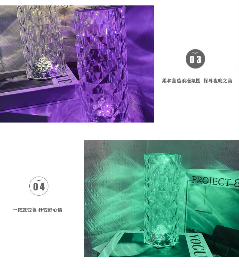 수면 크리스탈 다이아몬드 테이블 램프 충전 터치 가변 라이트 크리에이티브 분위기 램프 침실 수면 소프트 라이트 넷 레드 라이트스토어 가기